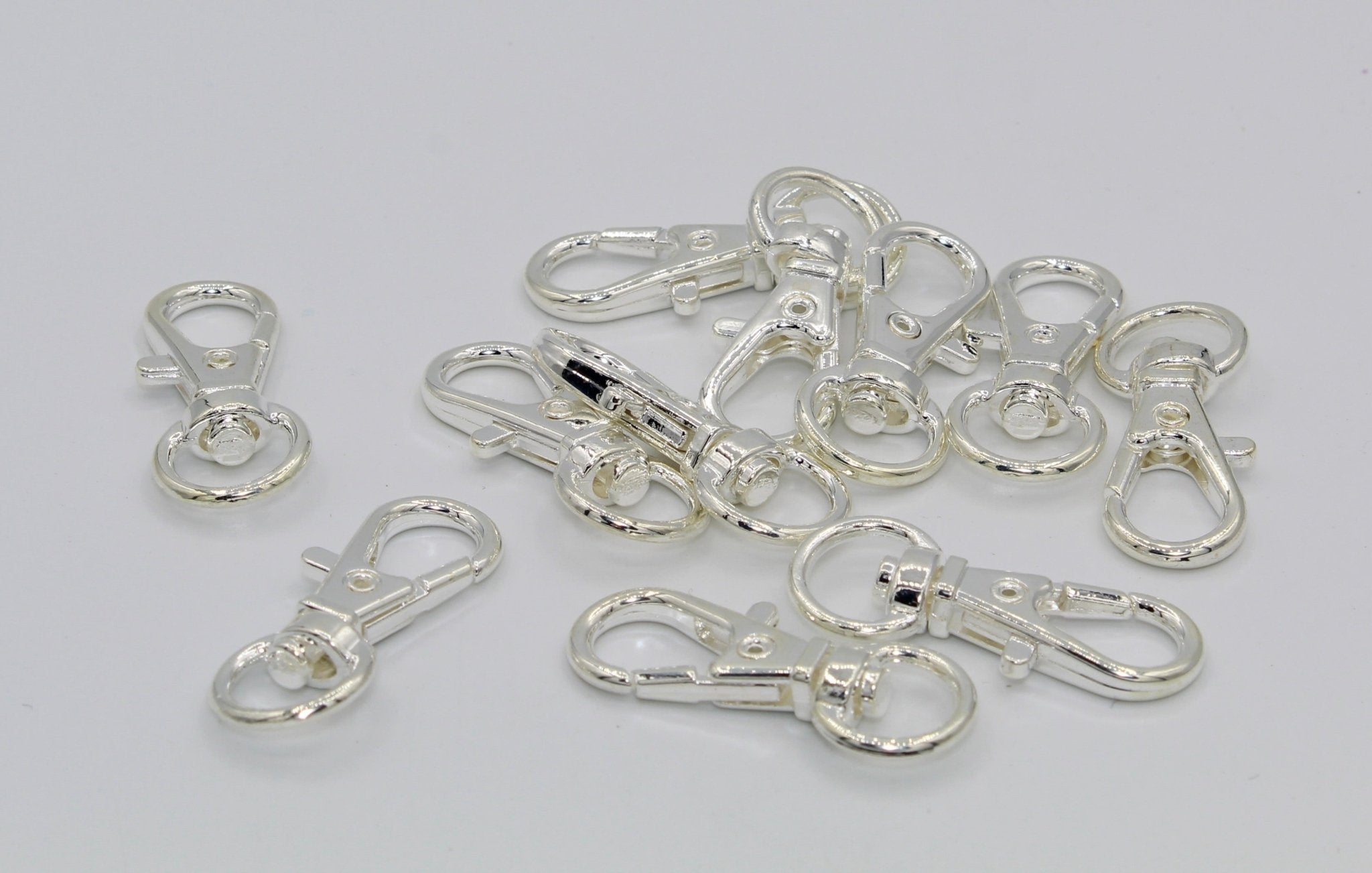 The lanyard swivel claps come in silver plated, gold plated, antique brass and antique copper finishes. They are sold individually.