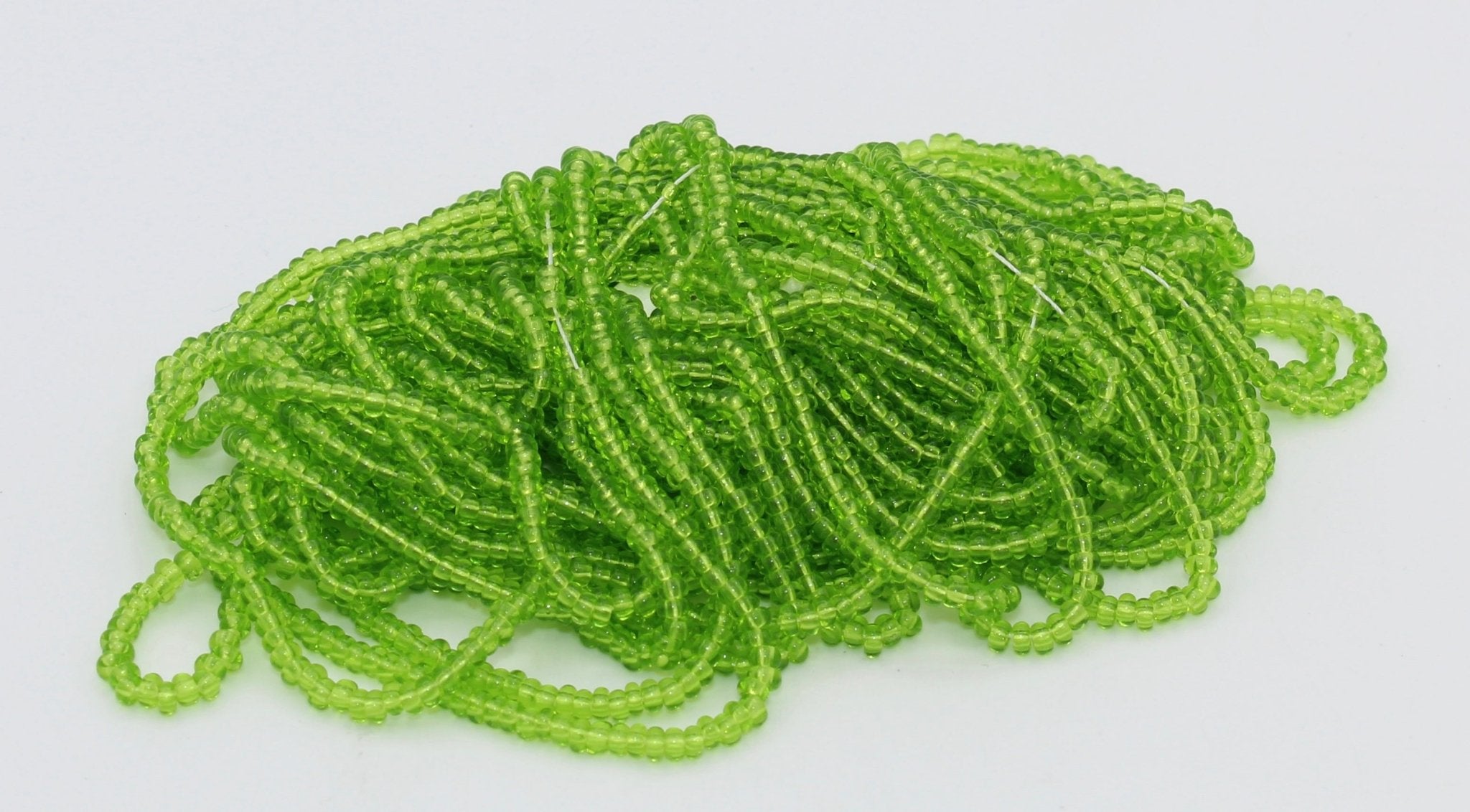 These size 10 seed beads are sold by the hank. Each hank has 12 strands of beads with a total of approximately 3800 beads.