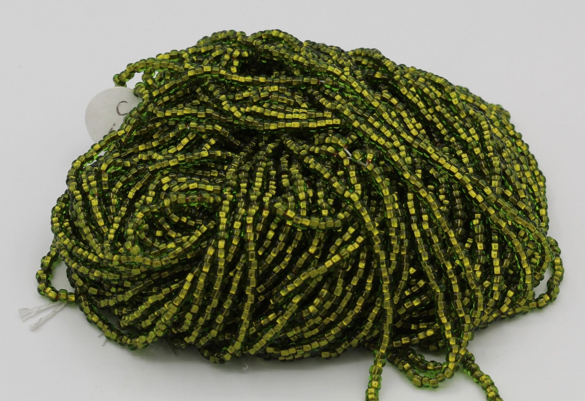 These size 10 seed beads are sold by the hank. Each hank has 12 strands of beads with a total of approximately 3800 beads.