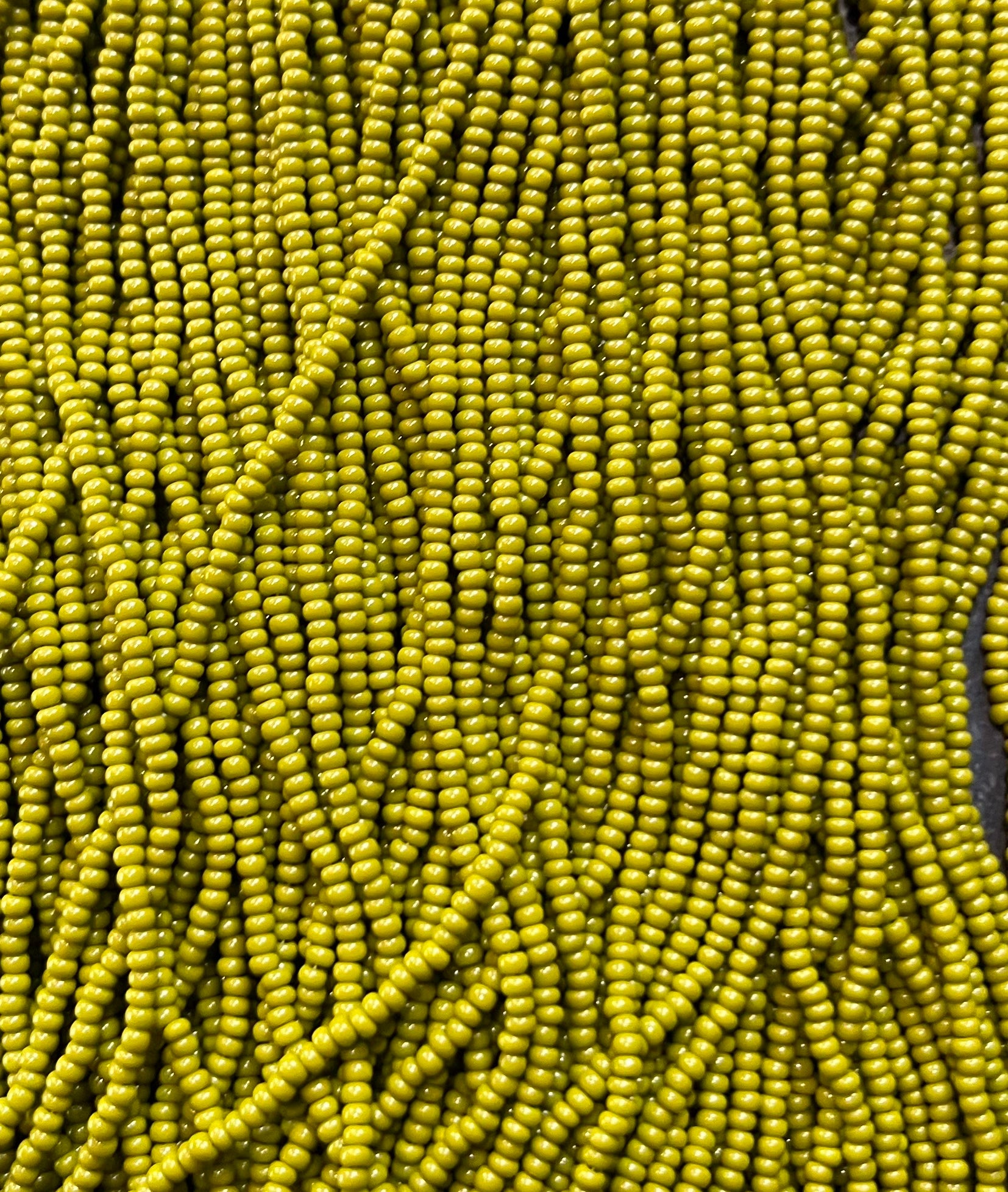 These size 10 seed beads are sold by the hank. Each hank has 12 strands of beads with a total of approximately 3800 beads.