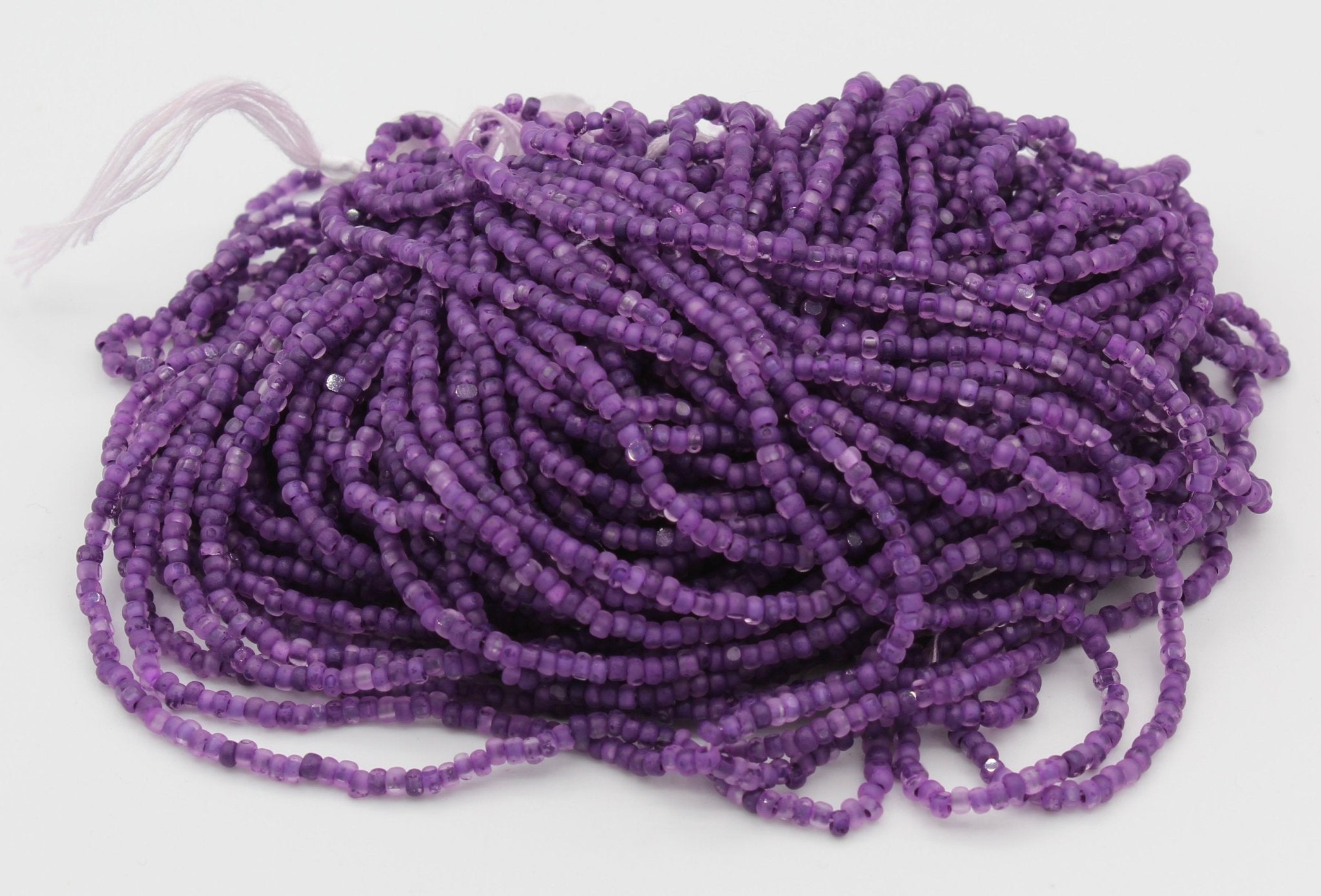 These beads are manufactured by the Sheen Company - Sheen Bead Hanks have 8 Strands in one hank, each 12" long. There are approximately 1,400 beads in a size 11 cut bead hank.