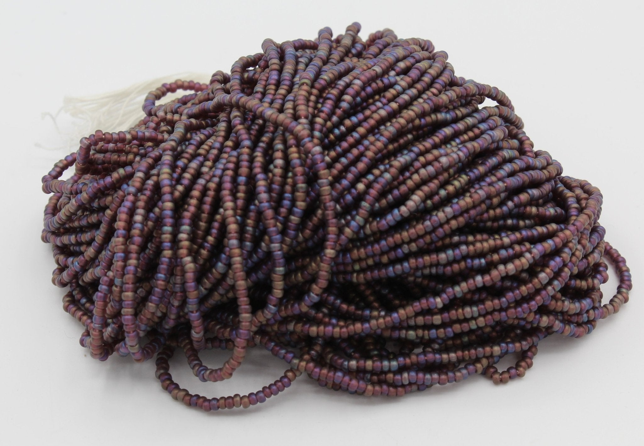 These beads are sold by the hank. Each hank has 12 strands with a total of approximately 4,000 beads. Lined up on a needle, roughly 17 beads = 1 inch (25mm).