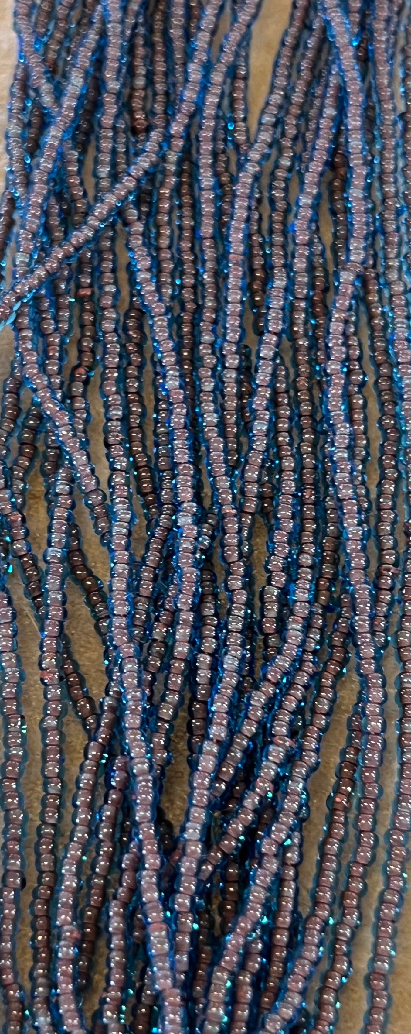These beads are sold by the hank. Each hank has 12 strands with a total of approximately 4,000 beads. Lined up on a needle, roughly 17 beads = 1 inch (25mm).