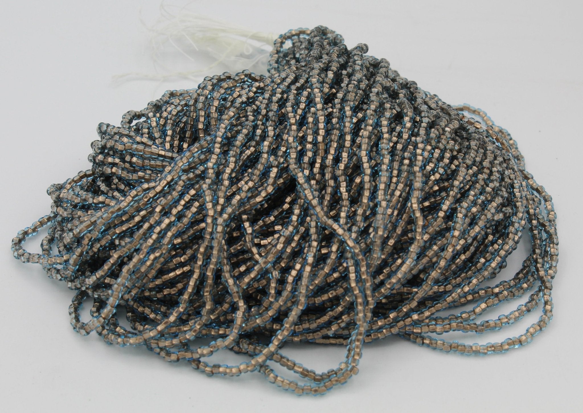 These beads are sold by the hank. Each hank has 12 strands with a total of approximately 4,000 beads. Lined up on a needle, roughly 17 beads = 1 inch (25mm).