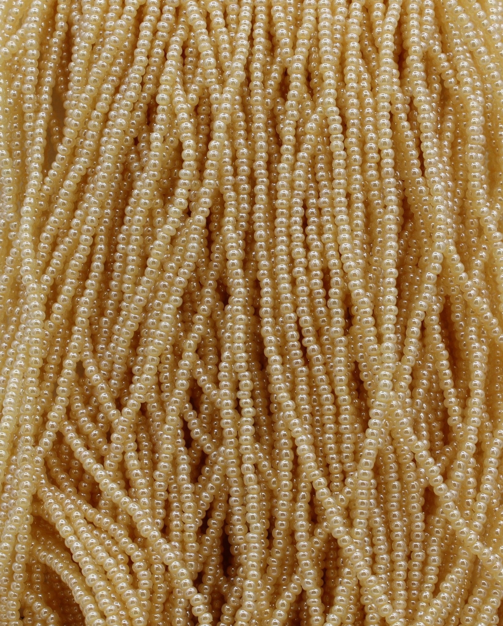 These beads are sold by the hank. Each hank has 12 strands with a total of approximately 4,000 beads. Lined up on a needle, roughly 17 beads = 1 inch (25mm).