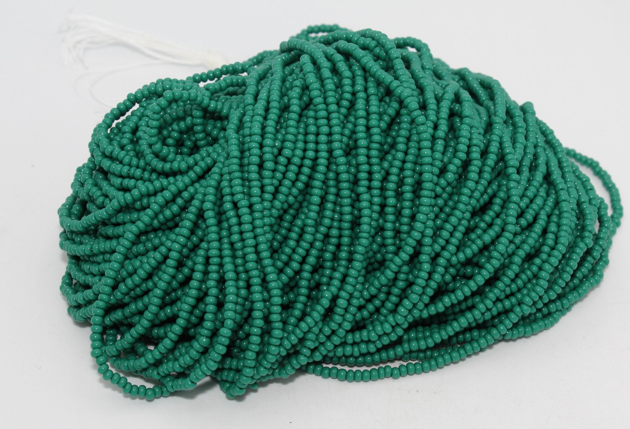 These beads are sold by the hank. Each hank has 12 strands with a total of approximately 4,000 beads. Lined up on a needle, roughly 17 beads = 1 inch (25mm).