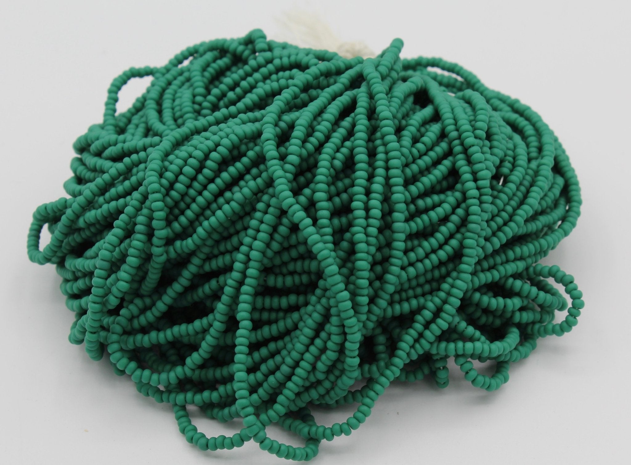 These beads are sold by the hank. Each hank has 12 strands with a total of approximately 4,000 beads. Lined up on a needle, roughly 17 beads = 1 inch (25mm). These beads can be purchased as a full or half hank.