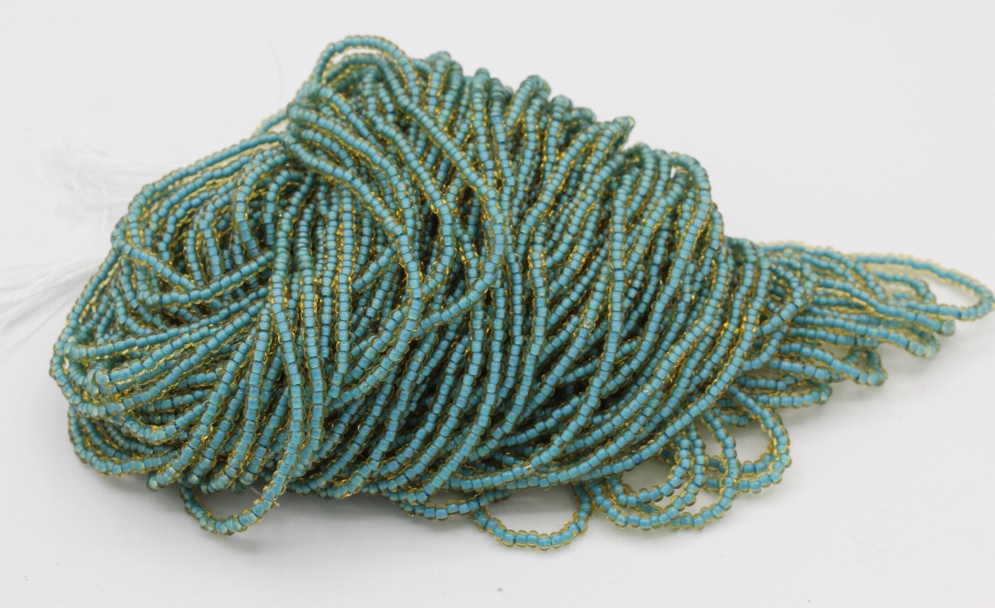 These beads are sold by the hank. Each hank has 12 strands with a total of approximately 4,000 beads. Lined up on a needle, roughly 17 beads = 1 inch (25mm).