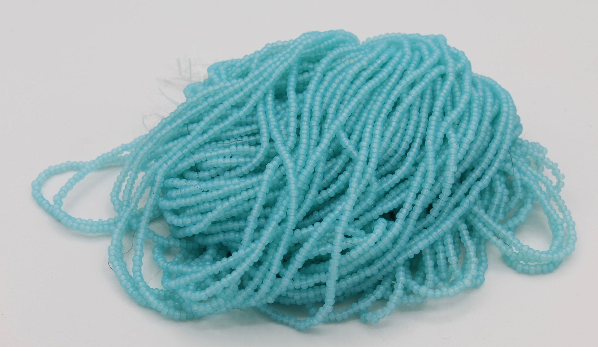These beads are sold by the hank. Each hank has 12 strands with a total of approximately 4,000 beads. Lined up on a needle, roughly 17 beads = 1 inch (25mm).