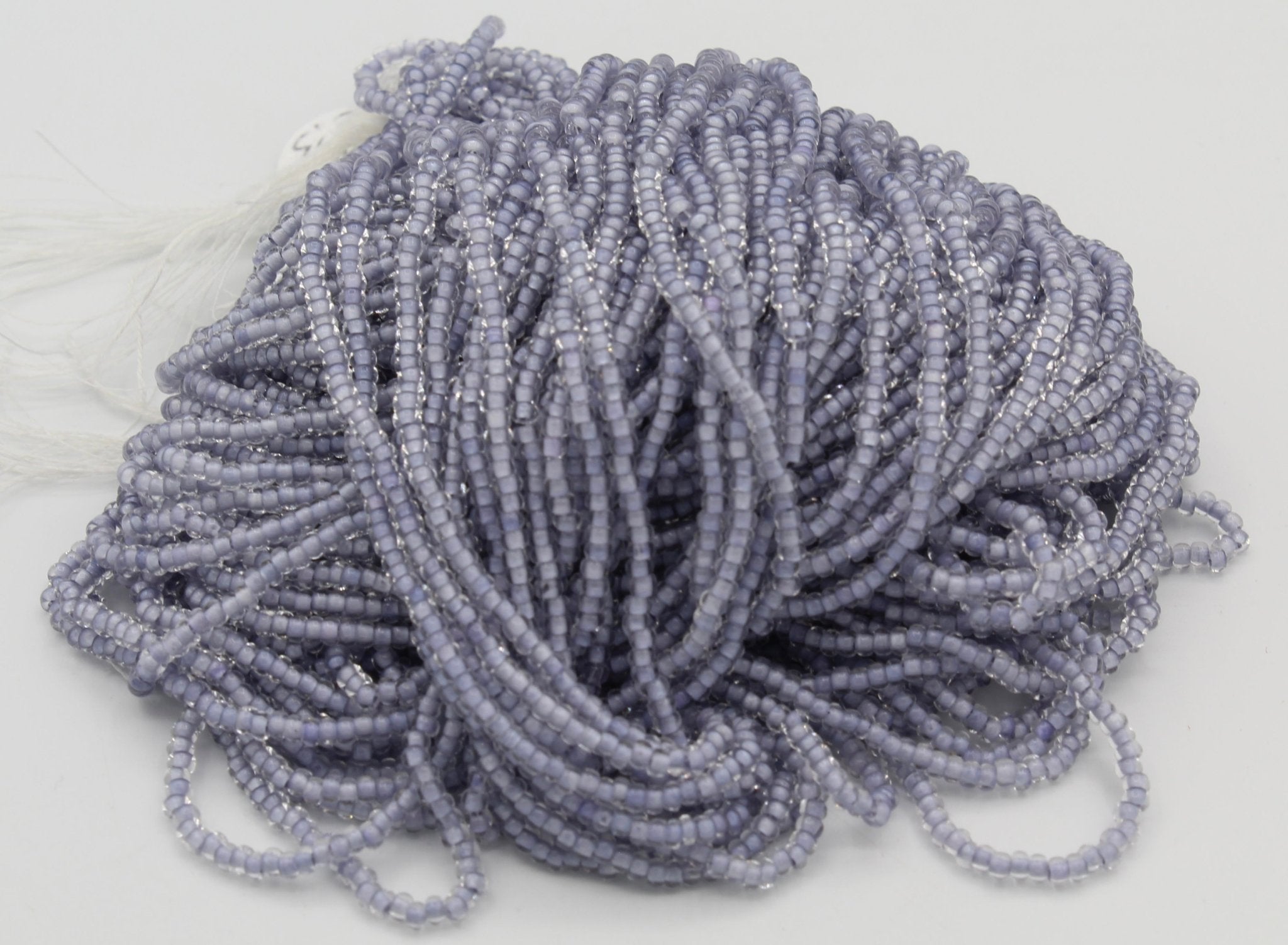 These beads are sold by the hank. Each hank has 12 strands with a total of approximately 4,000 beads. Lined up on a needle, roughly 17 beads = 1 inch (25mm).