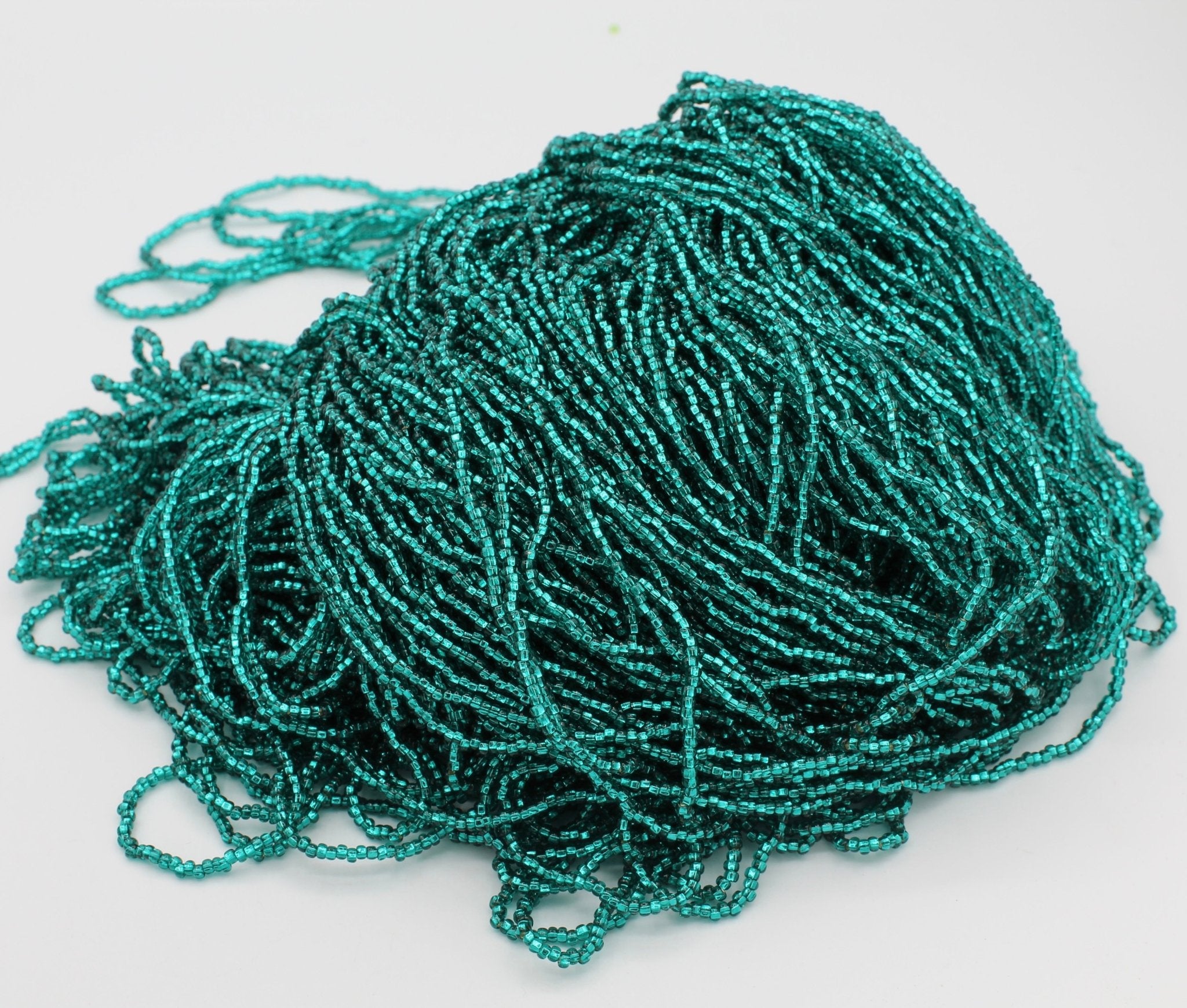 These beads are sold by the hank. Each hank has 12 strands with a total of approximately 4,000 beads. Lined up on a needle, roughly 17 beads = 1 inch (25mm).