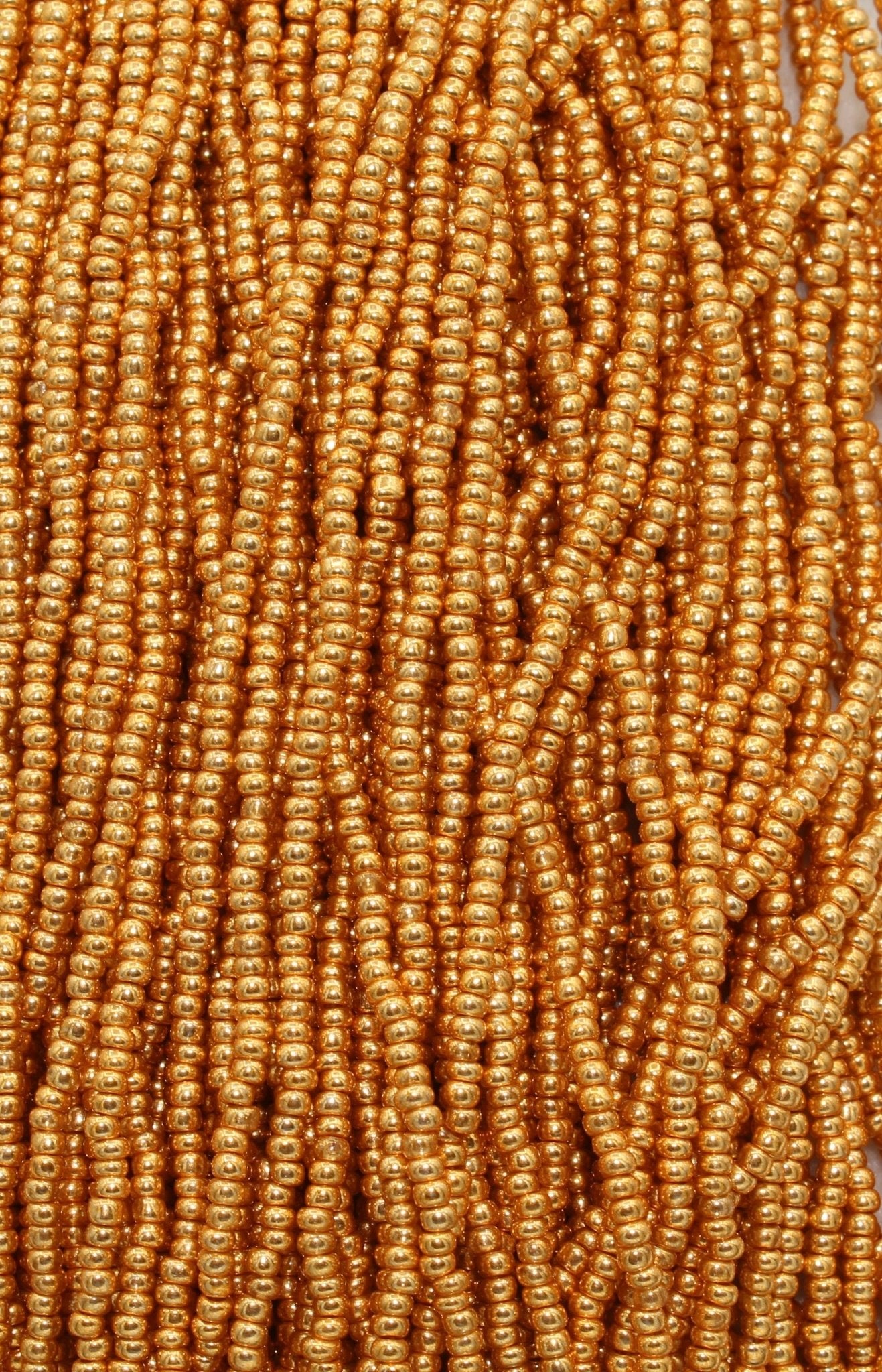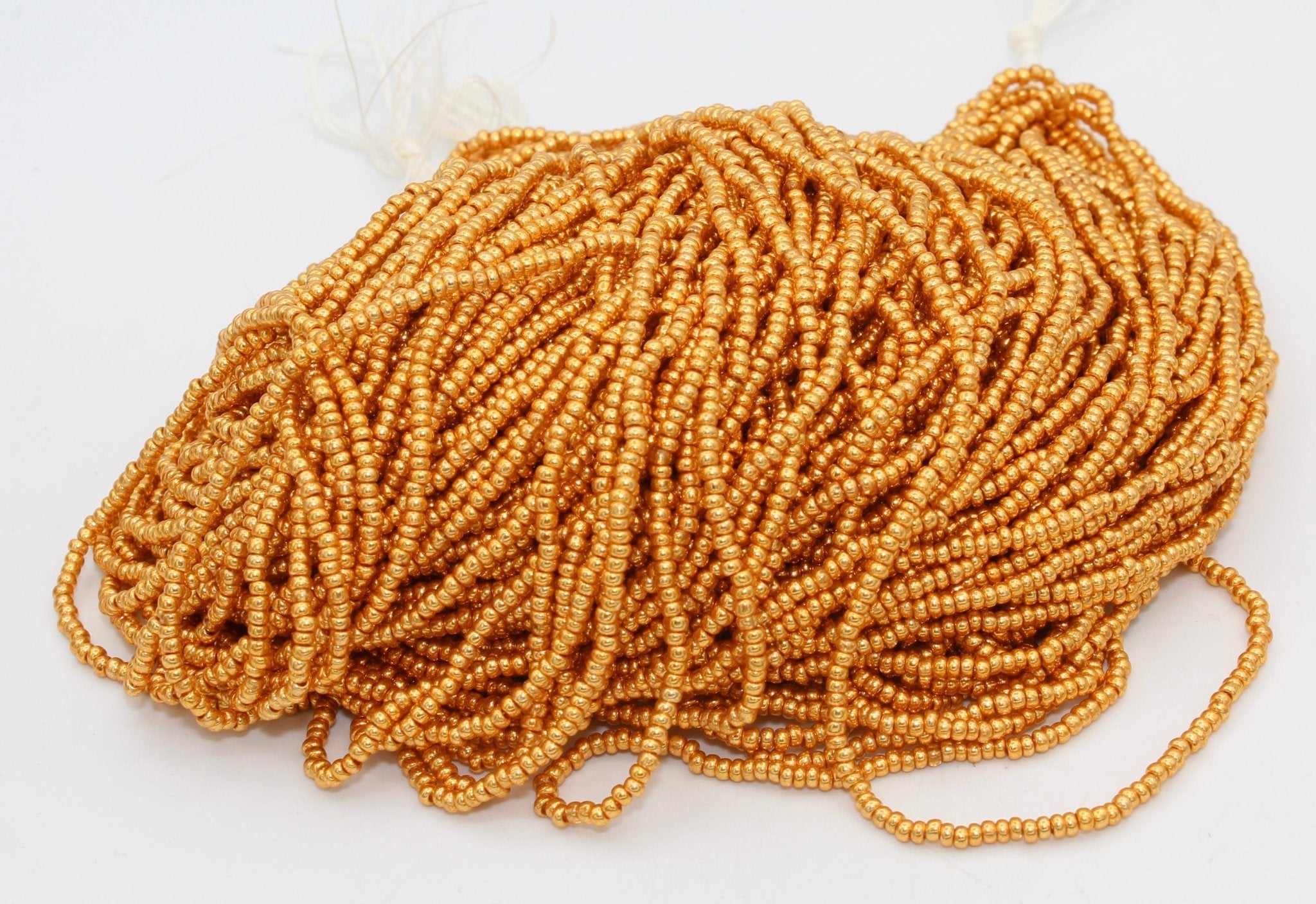 These beads are sold by the hank. Each hank has 12 strands with a total of approximately 4,000 beads. Lined up on a needle, roughly 17 beads = 1 inch (25mm).