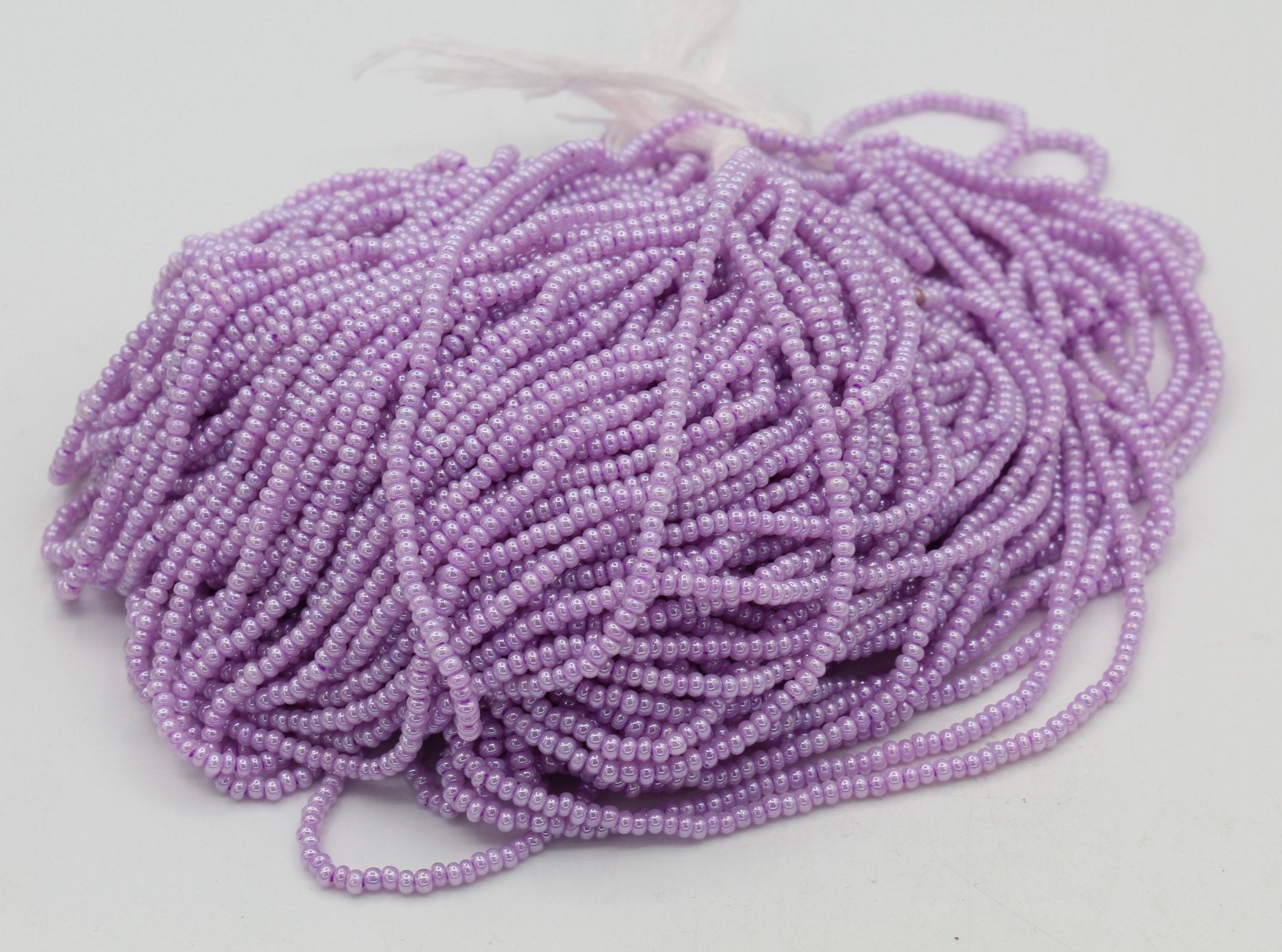 These beads are sold by the hank. Each hank has 12 strands with a total of approximately 4,000 beads. Lined up on a needle, roughly 17 beads = 1 inch (25mm).