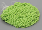 These beads are sold by the hank. Each hank has 12 strands with a total of approximately 4,000 beads. Lined up on a needle, roughly 17 beads = 1 inch (25mm).