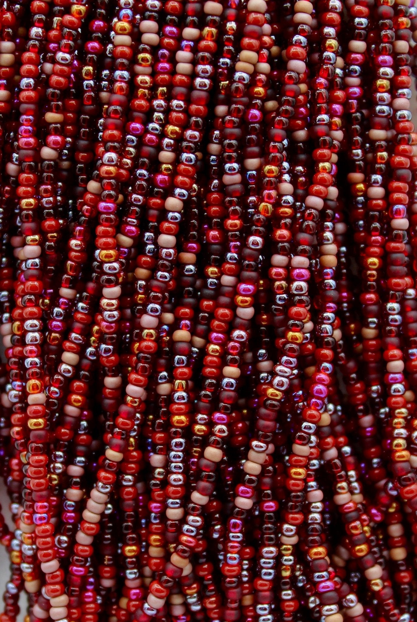 These beads are sold by the hank. Each hank has 12 strands with a total of approximately 4,000 beads. Lined up on a needle, roughly 17 beads = 1 inch (25mm).