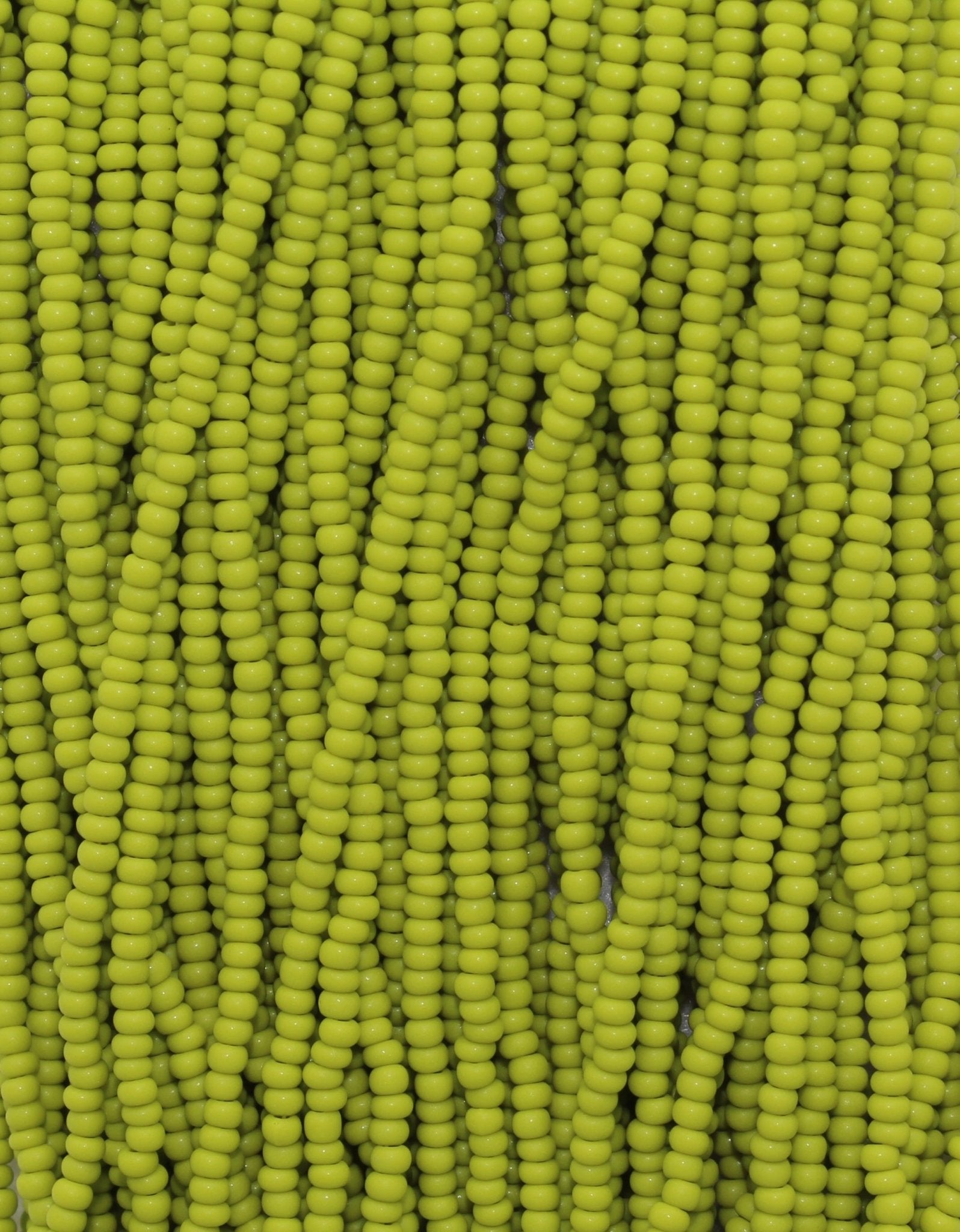 These beads are sold by the hank. Each hank has 12 strands with a total of approximately 4,000 beads. Lined up on a needle, roughly 17 beads = 1 inch (25mm).