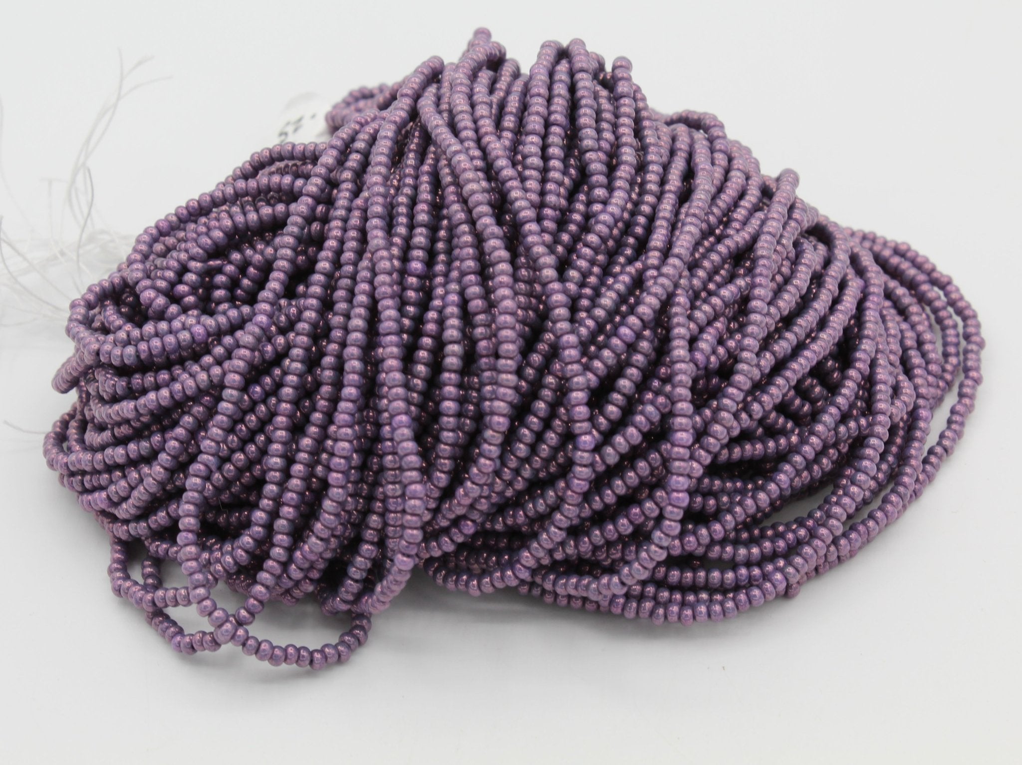 These beads are sold by the hank. Each hank has 12 strands with a total of approximately 4,000 beads. Lined up on a needle, roughly 17 beads = 1 inch (25mm).