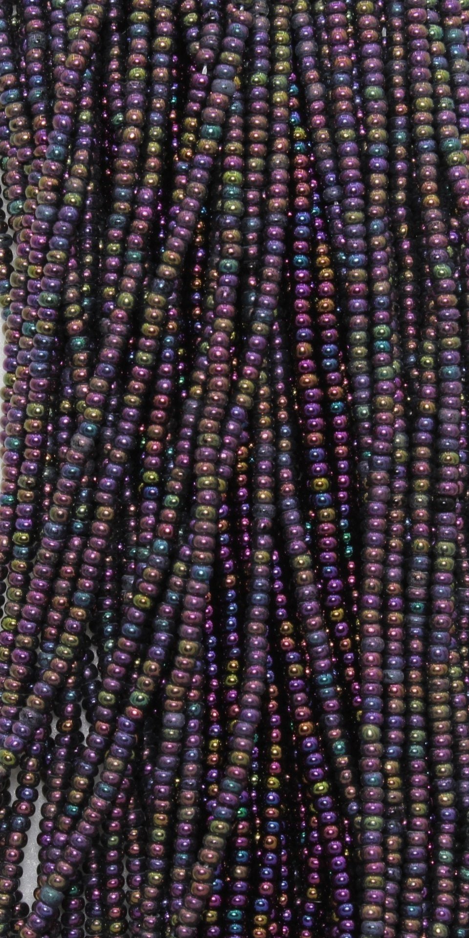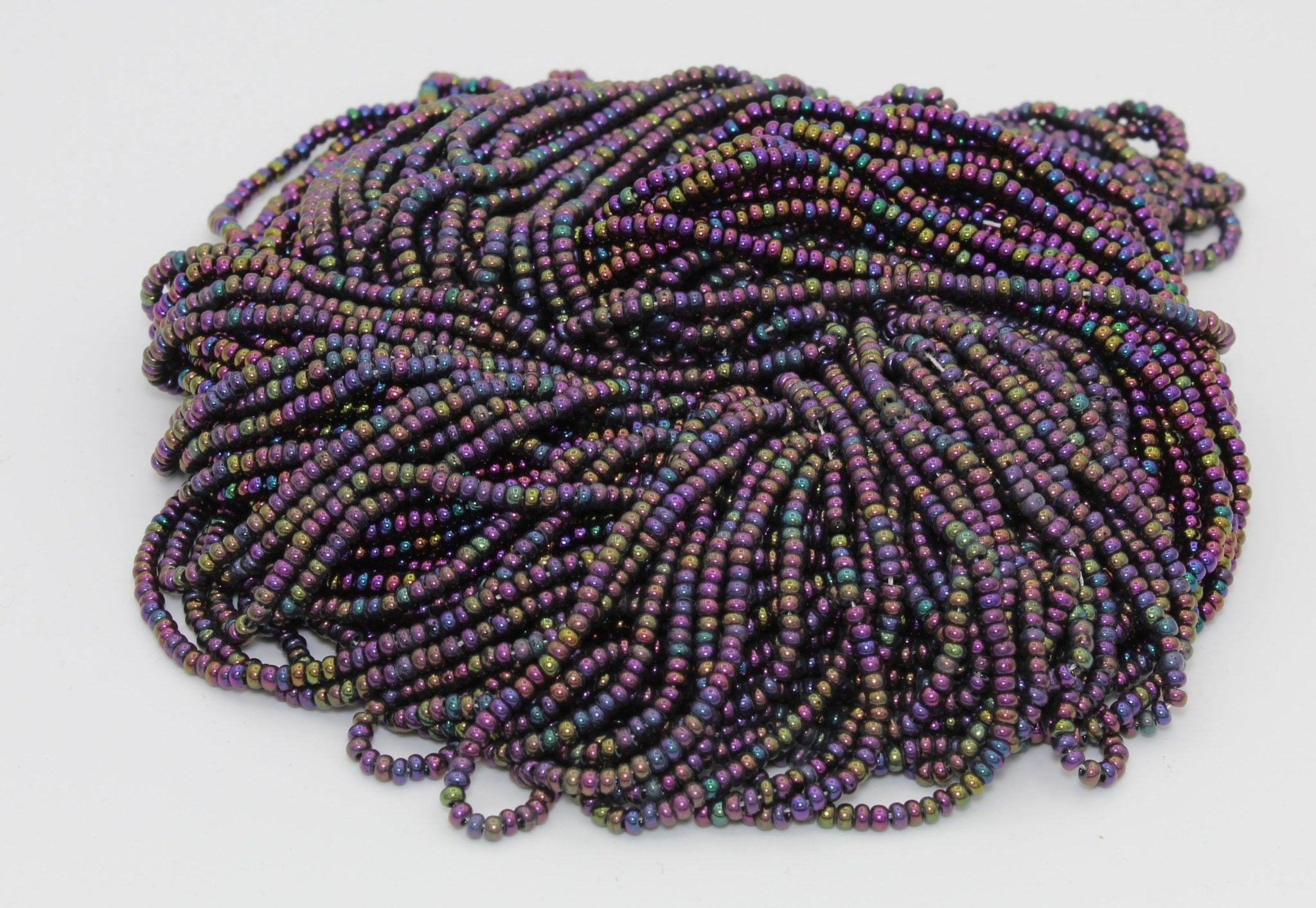 These beads are sold by the hank. Each hank has 12 strands with a total of approximately 4,000 beads. Lined up on a needle, roughly 17 beads = 1 inch (25mm).