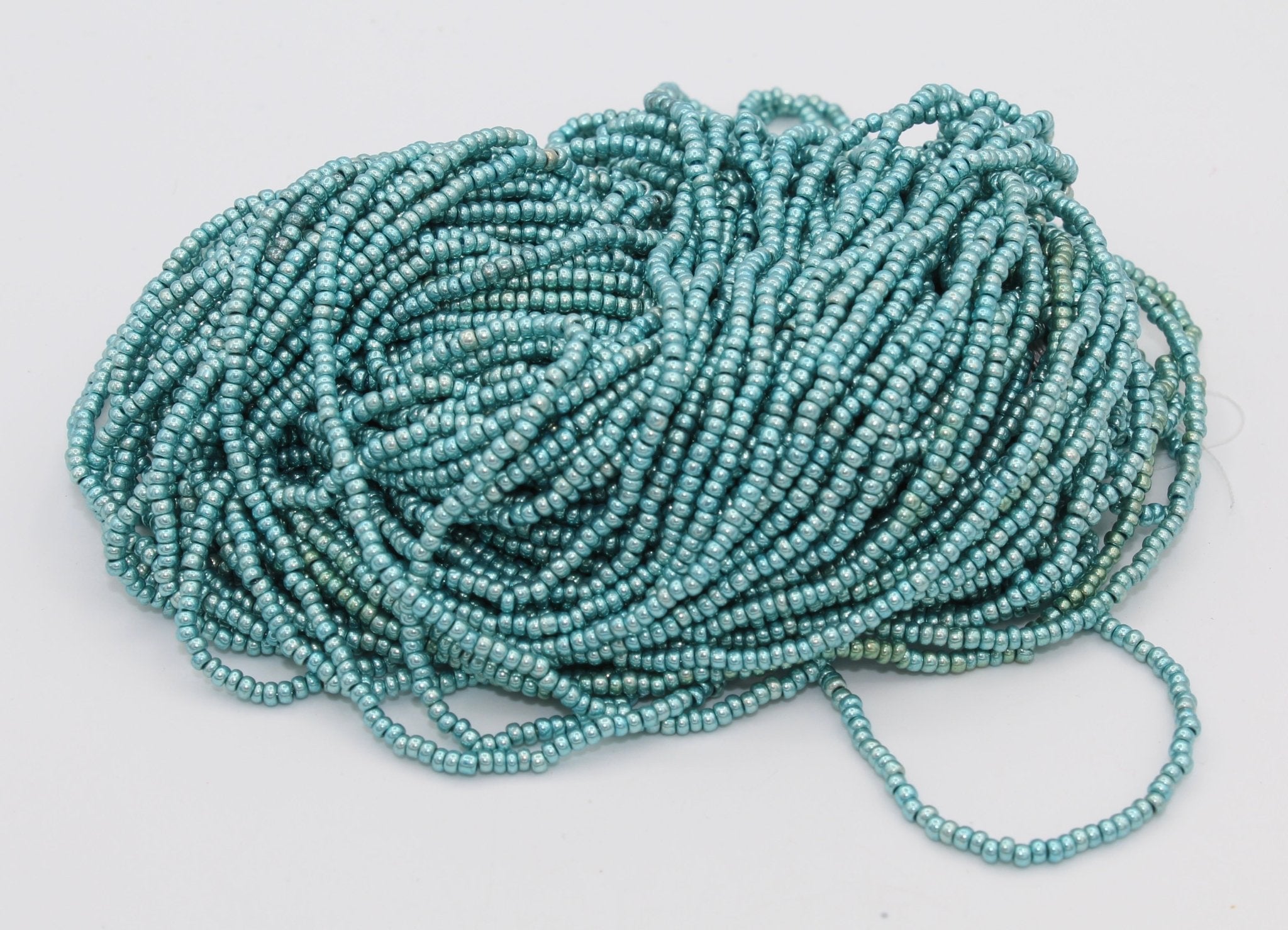 These beads are sold by the hank. Each hank has 12 strands with a total of approximately 4,000 beads. Lined up on a needle, roughly 17 beads = 1 inch (25mm).