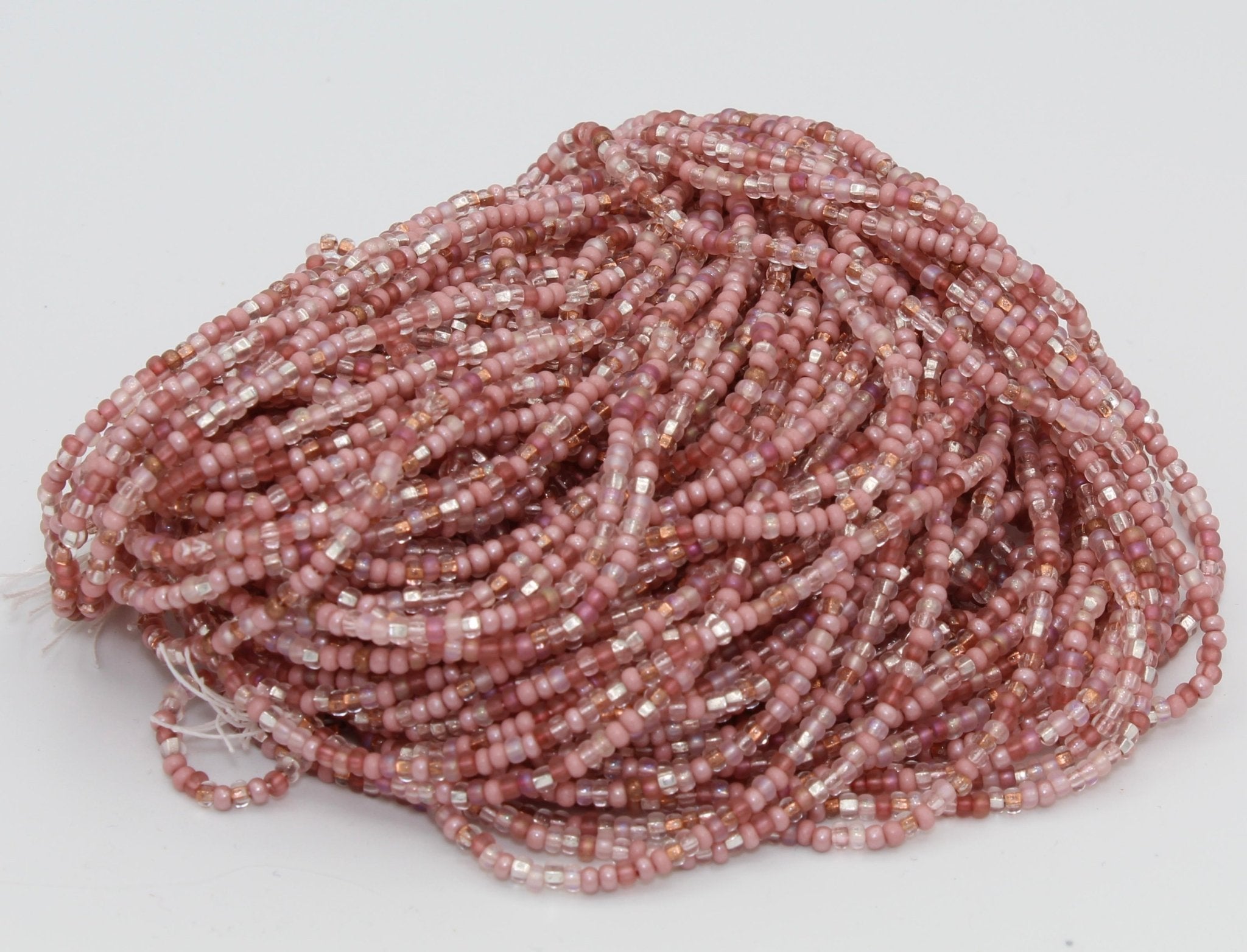 These beads are sold by the hank. Each hank has 12 strands with a total of approximately 4,000 beads. Lined up on a needle, roughly 17 beads = 1 inch (25mm).