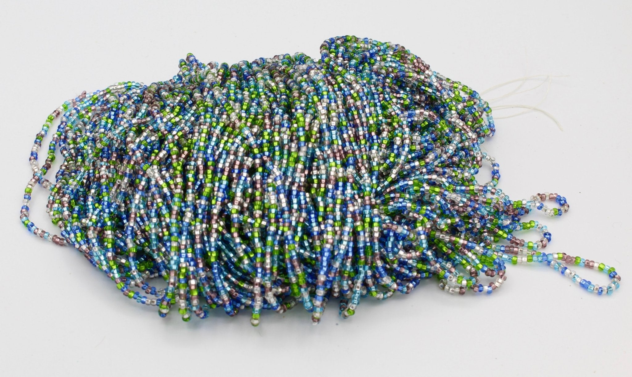 These beads are sold by the hank. Each hank has 12 strands with a total of approximately 4,000 beads. Lined up on a needle, roughly 17 beads = 1 inch (25mm).