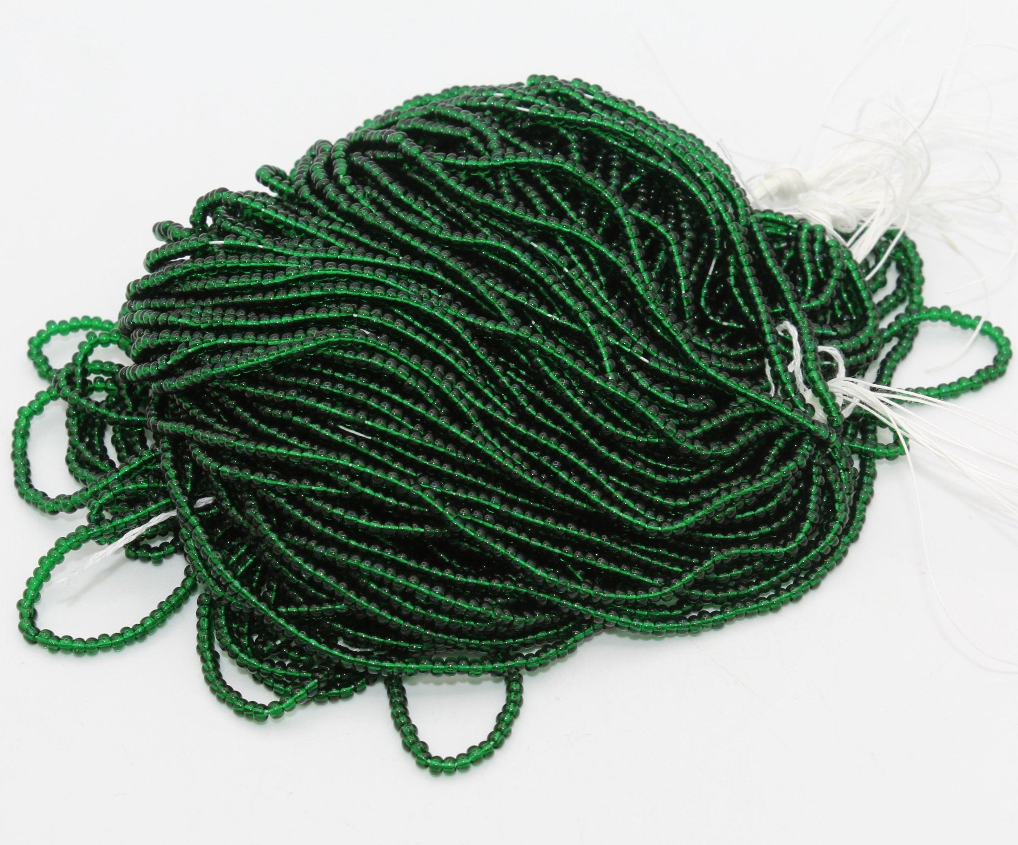 These beads are sold by the hank. Each hank has 12 strands with a total of approximately 4,000 beads. Lined up on a needle, roughly 17 beads = 1 inch (25mm).
