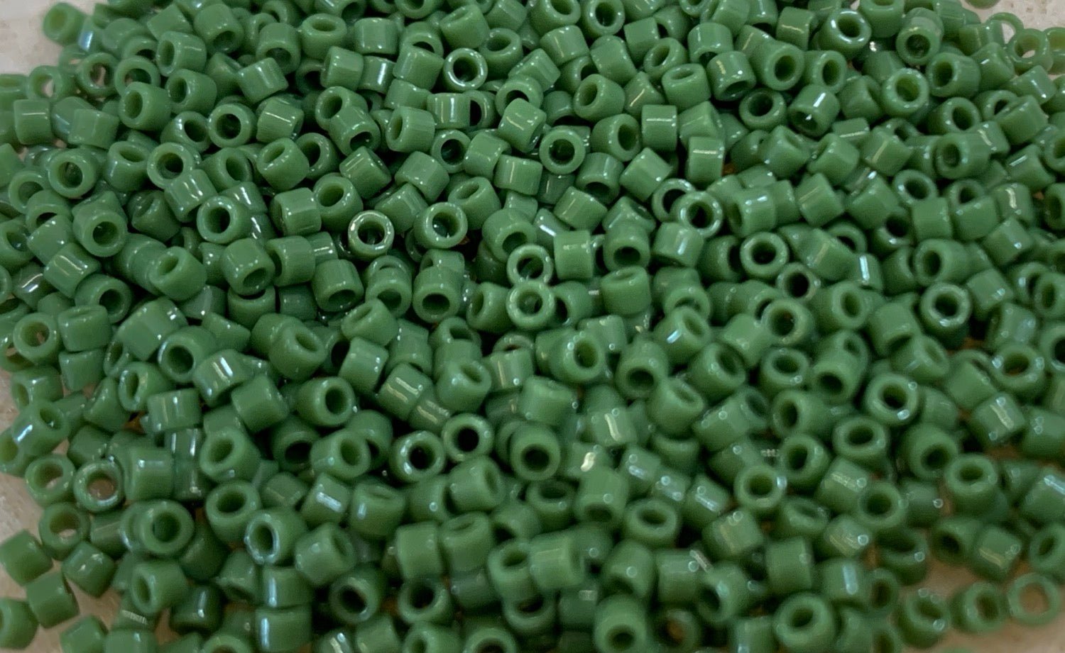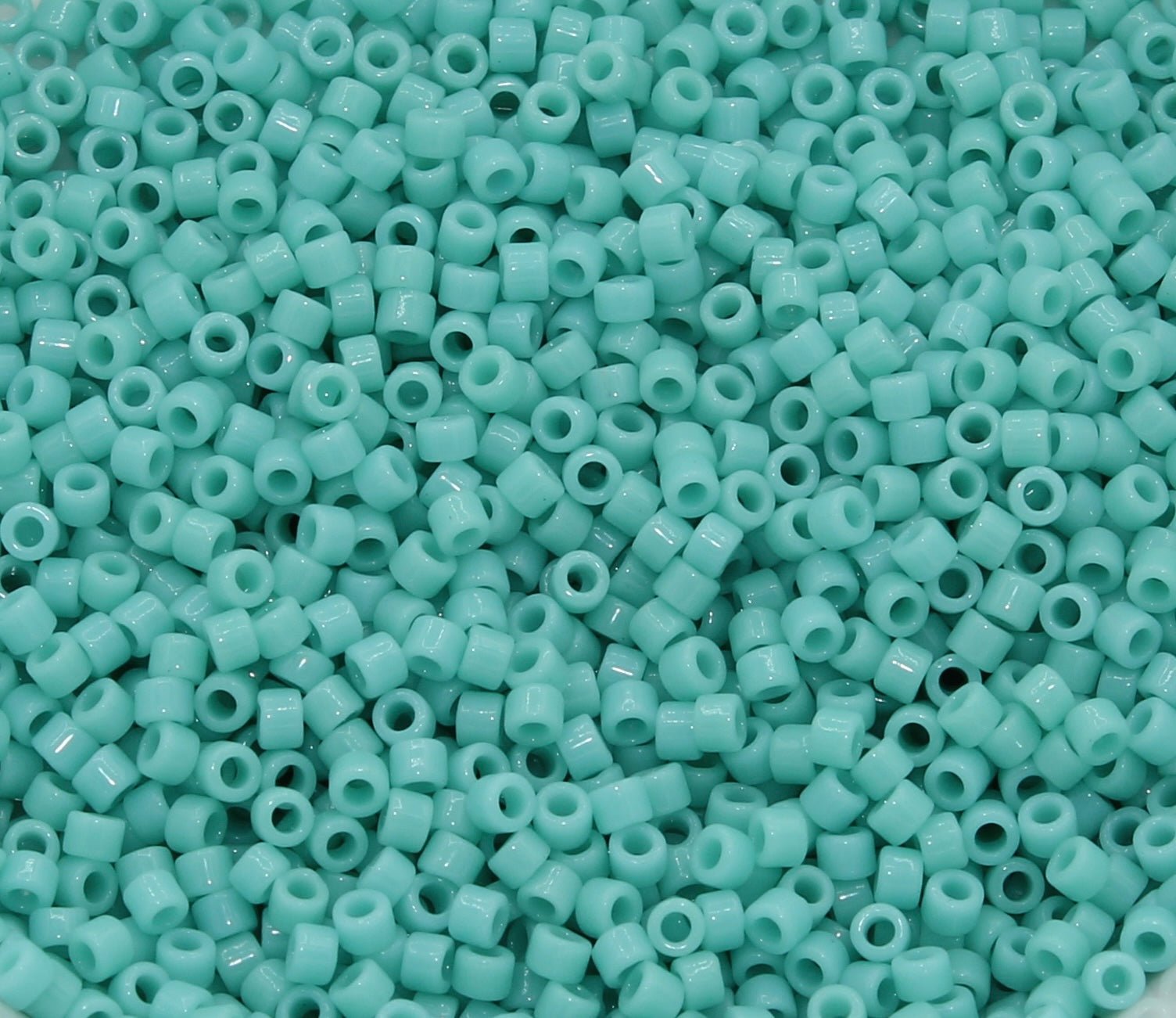 Delica beads are cylinder or tube shaped and often used in bead loom weaving, geometric beadwork, peyote stitch and brick stitch because they line up uniformly. The large hole offers the flexibility for multiple needle passes.