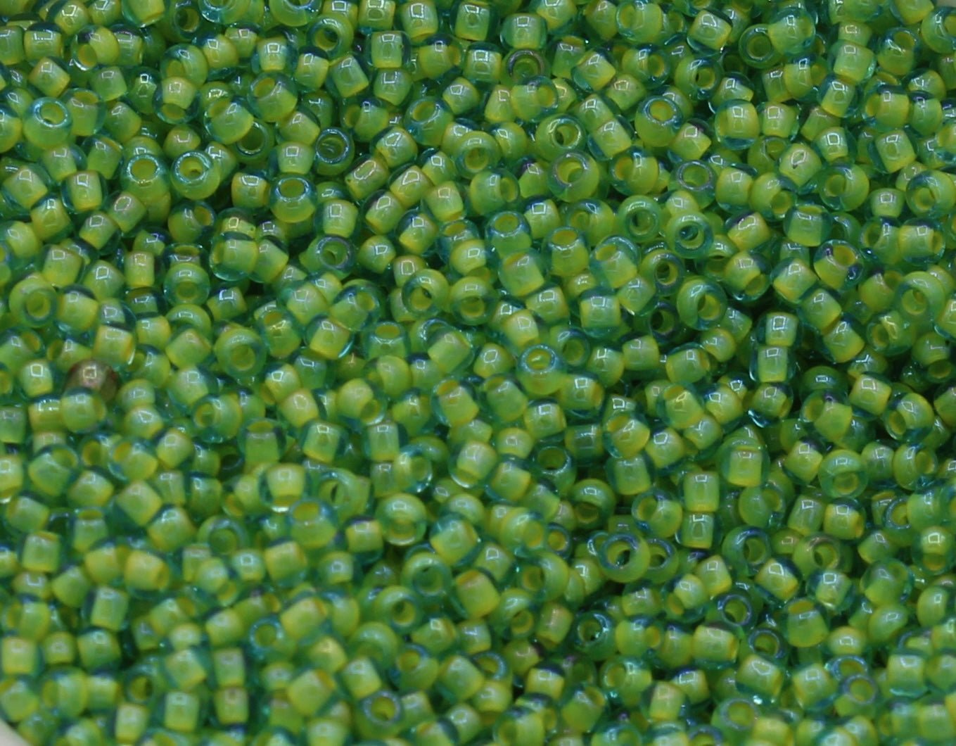 Aqua Opaque Yellow Lined Toho Seed Beads - 11t - 307