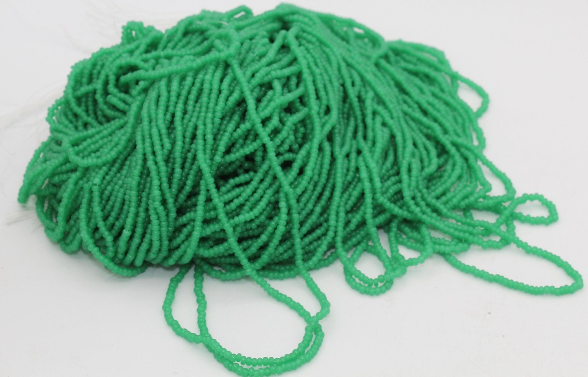 They are sold by the hank. There are 12 strands per hank, with approximately 4700 beads per hank.