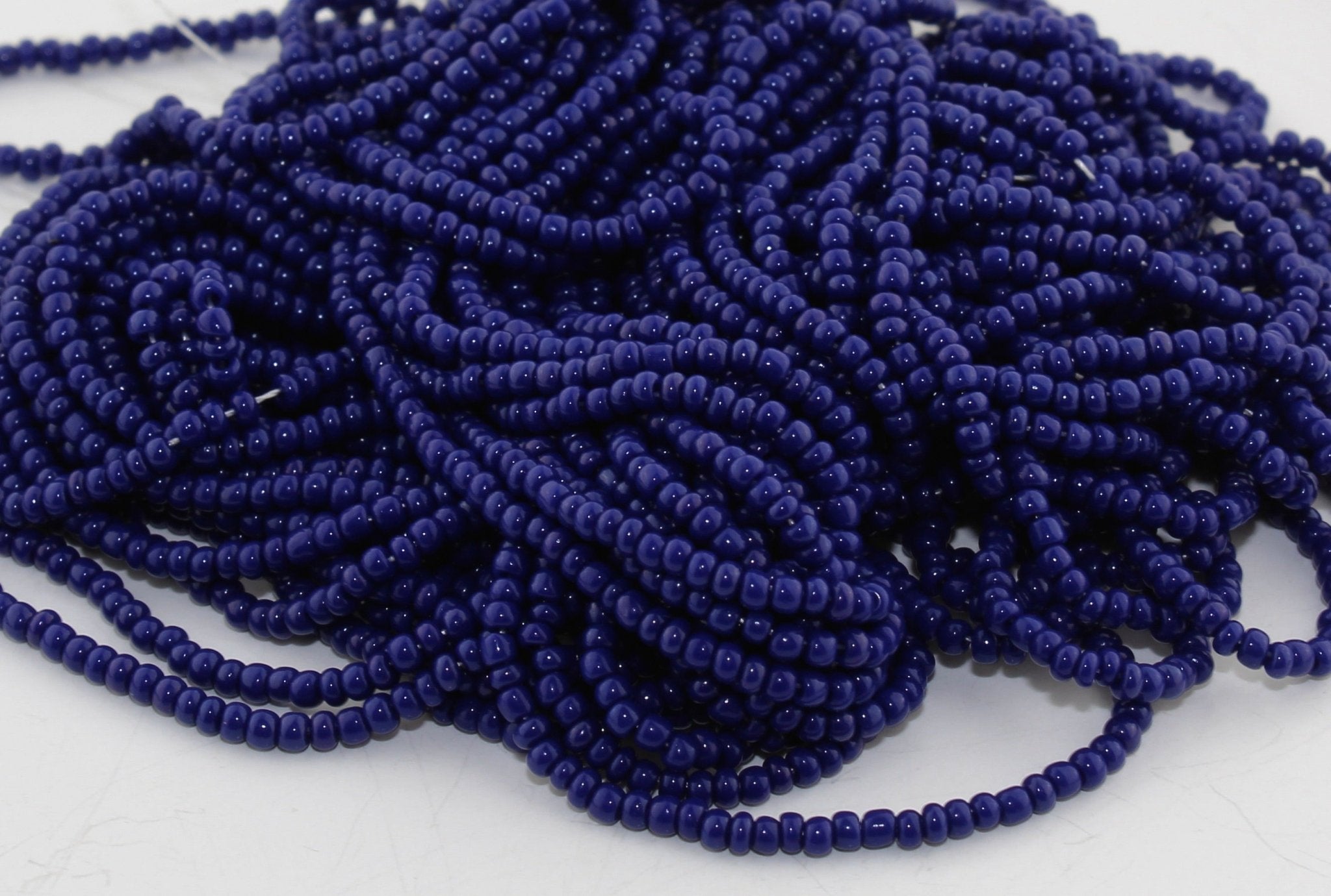They are sold by the hank. There are 12 strands per hank, with approximately 4700 beads per hank.