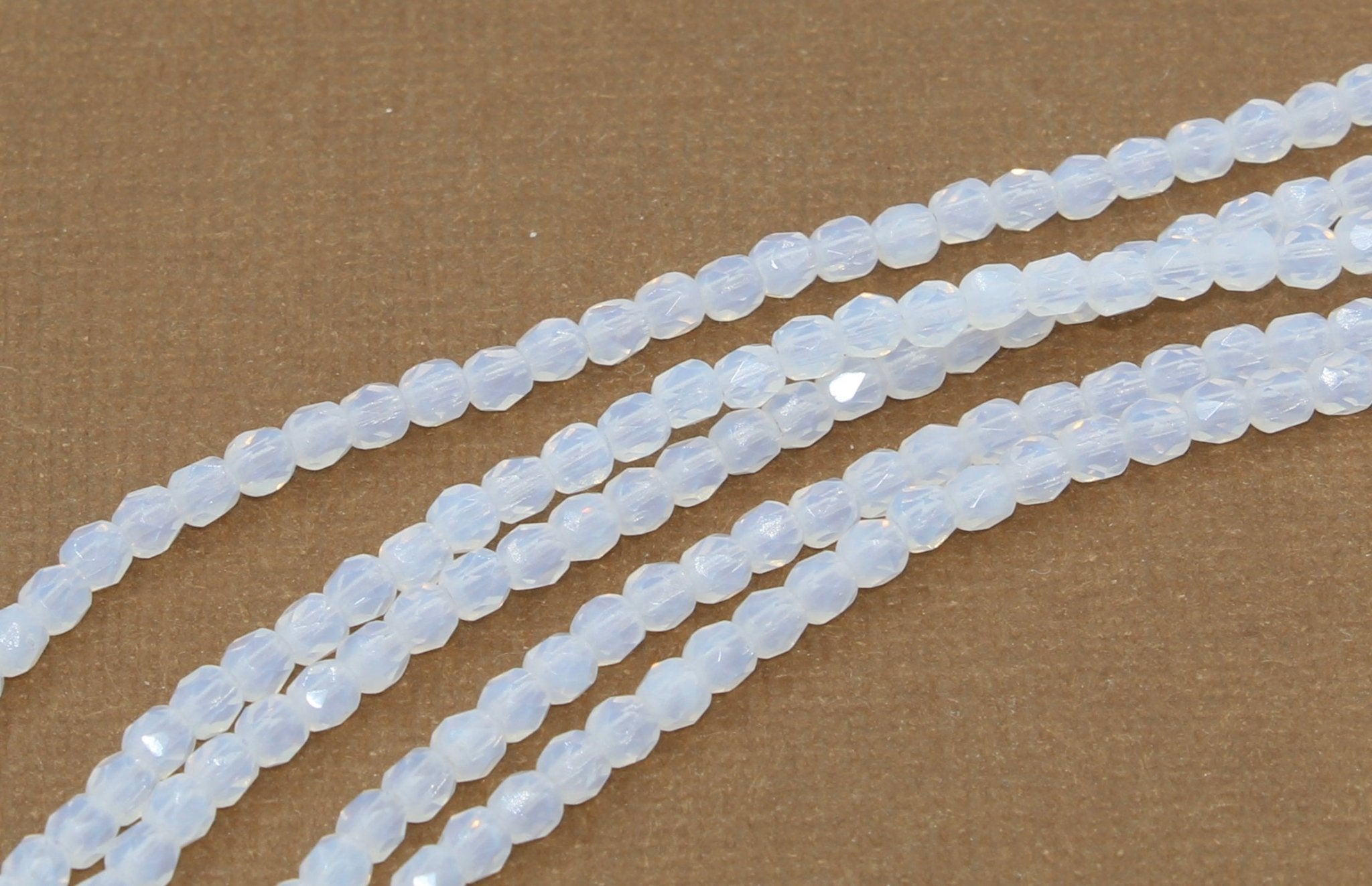 These 3mm Fire Polished beads are sold by the 6" (15cm) strand. Each strand has approximately 50 beads. The hole is approximately .5mm.