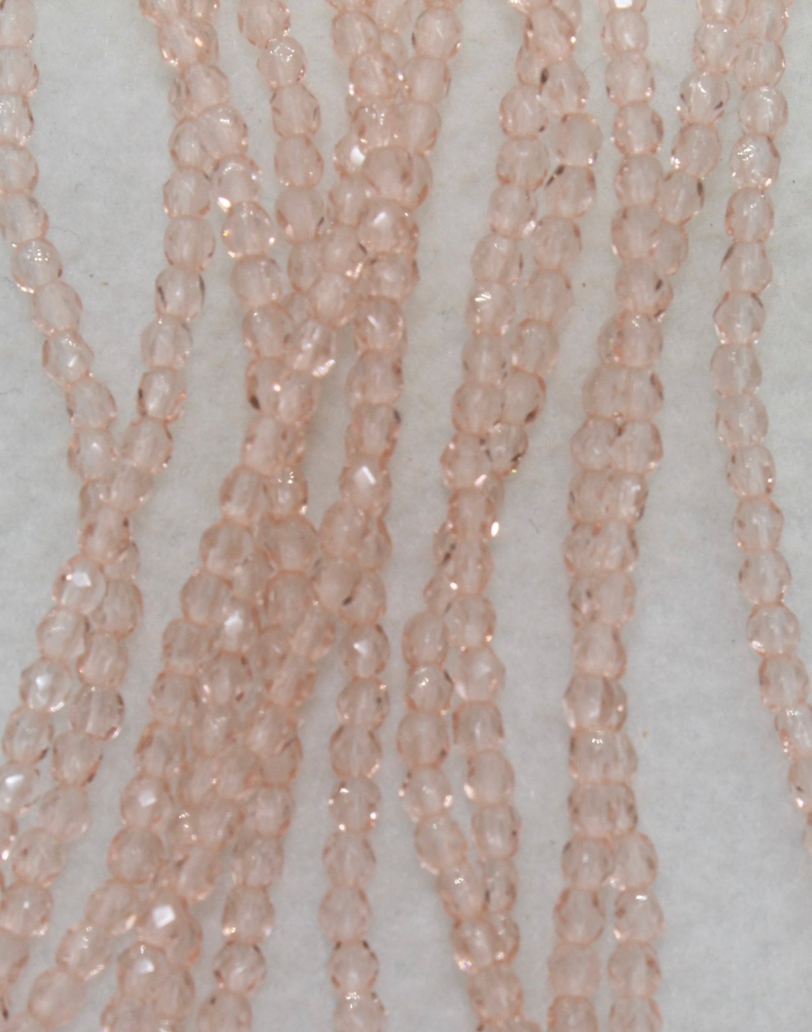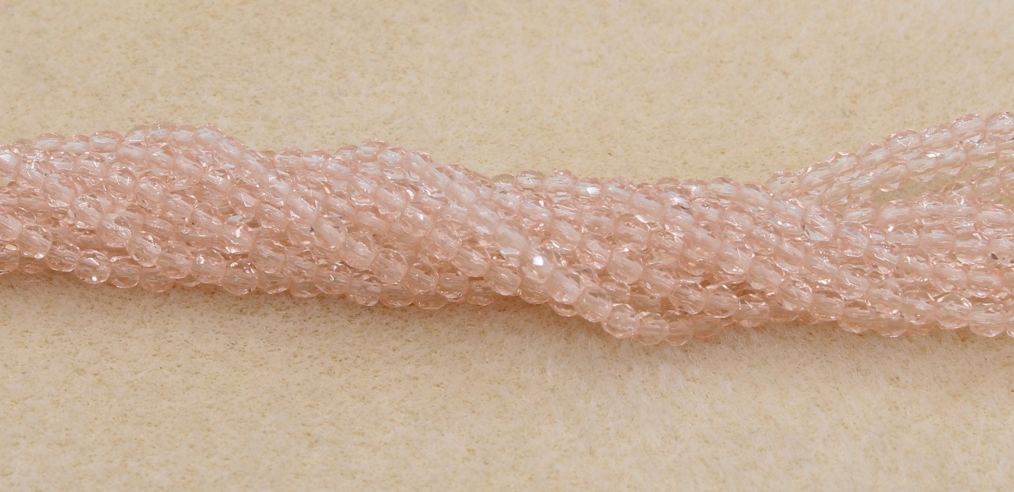 These 3mm Fire Polished beads are sold by the 6" (15cm) strand. Each strand has approximately 50 beads. The hole is approximately .5mm.
