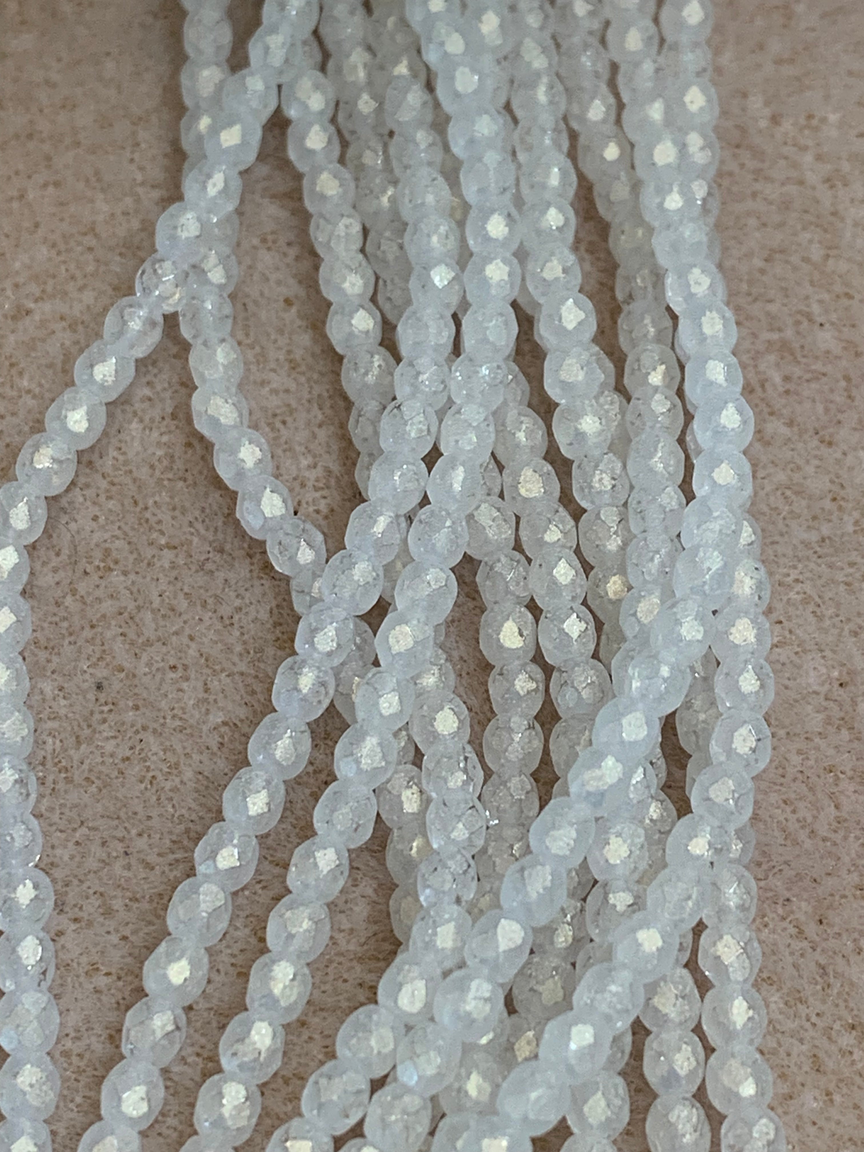 These are Fire polished glass beads from the Czech Republic. They are 3mm and faceted.