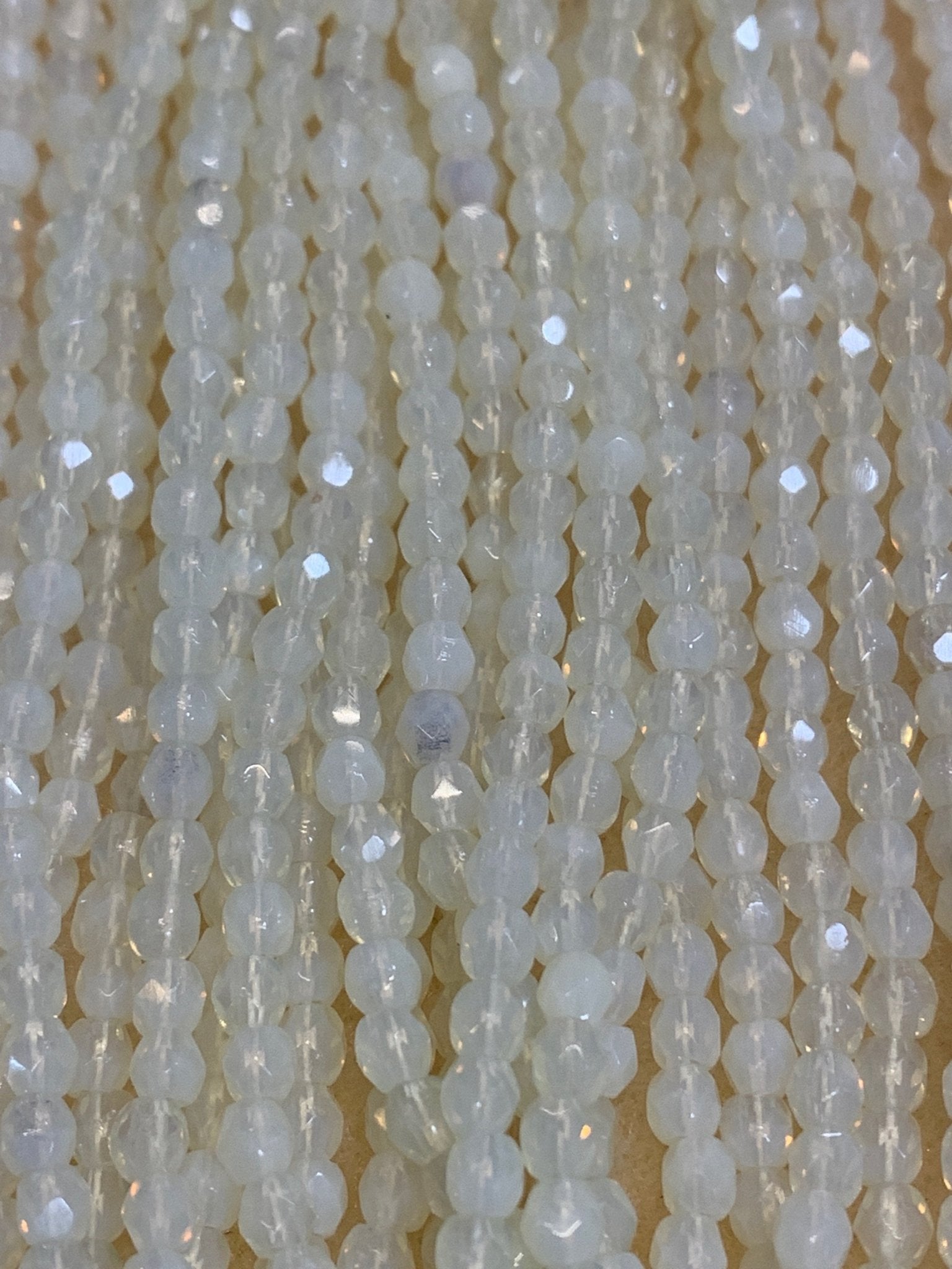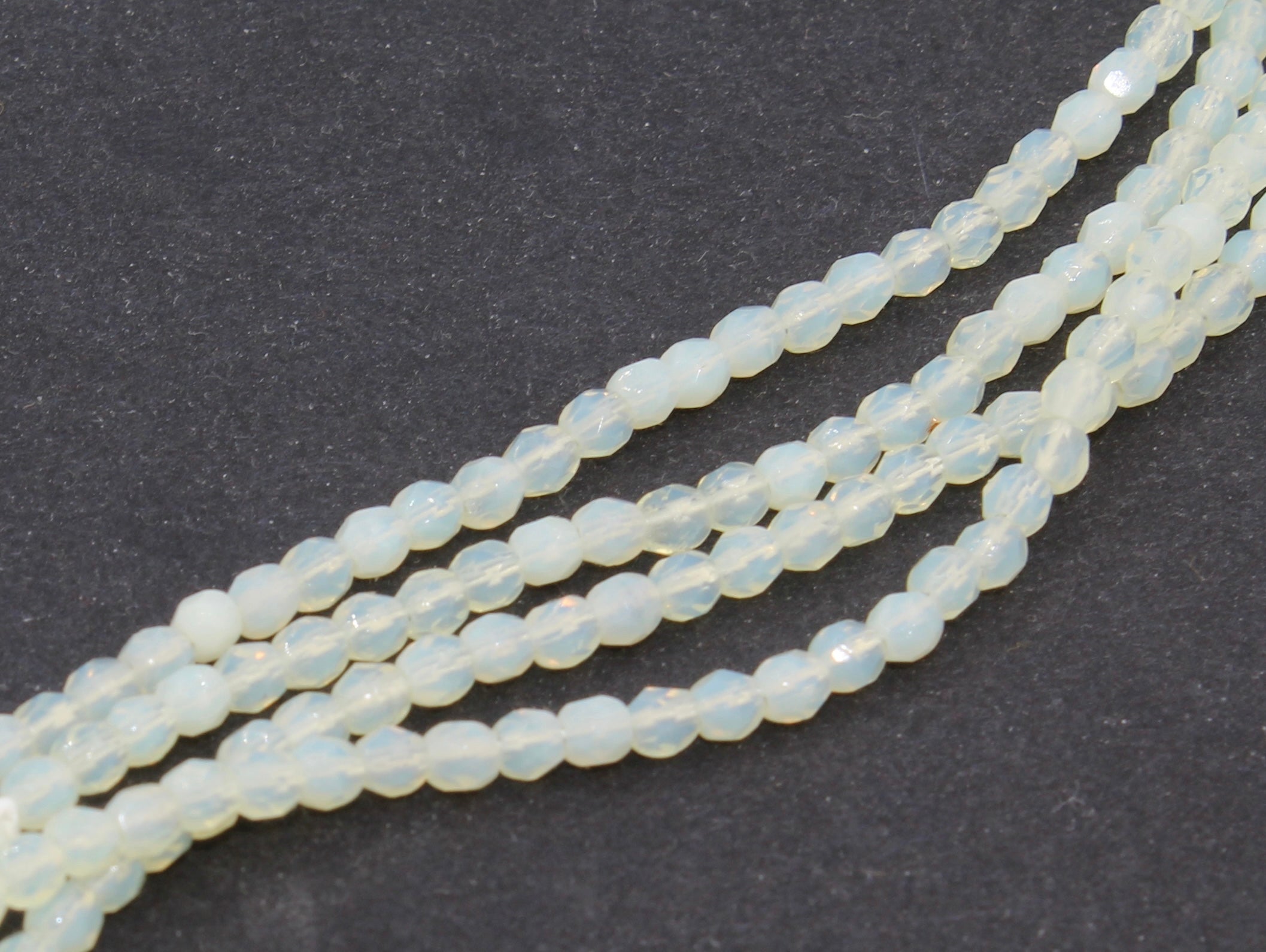 Create stunning jewelry with our extensive collection of glass Fire Polished beads, in many finishes and colors. These 3mm fire polished glass beads are sold by the 6" strand. There are approximately 50 beads per strand. The hole is approximately .5mm.
