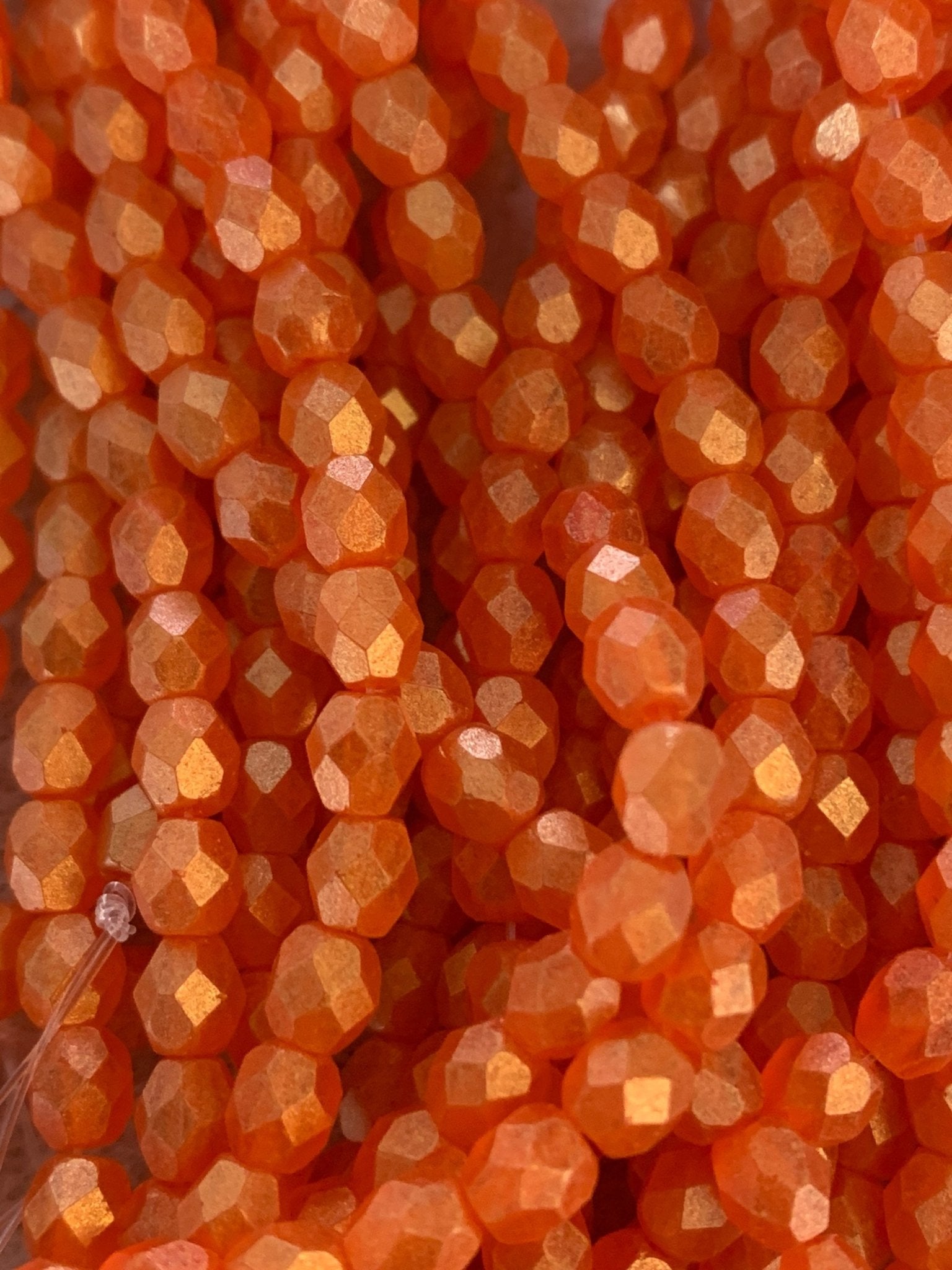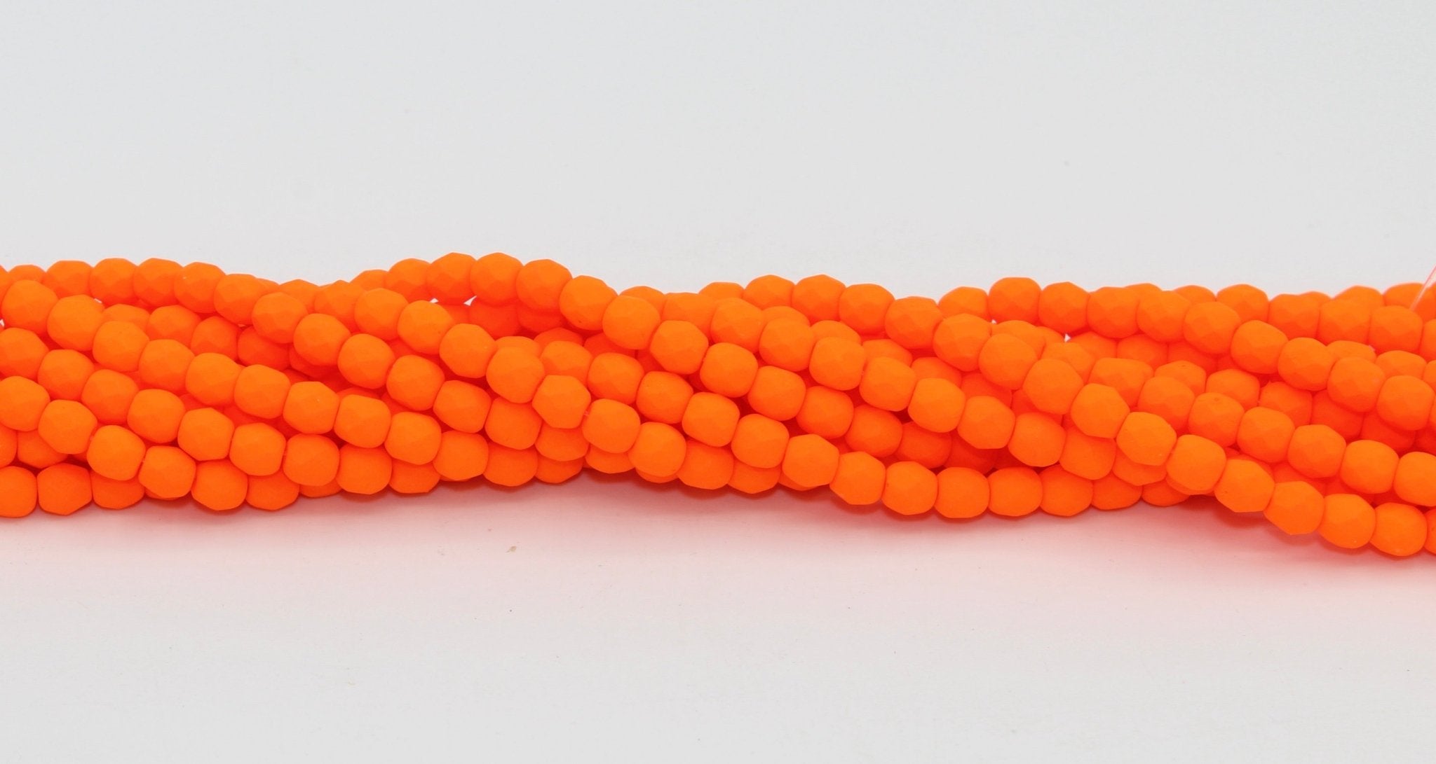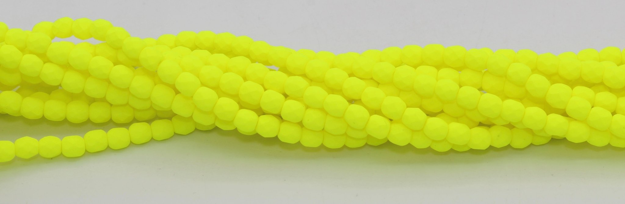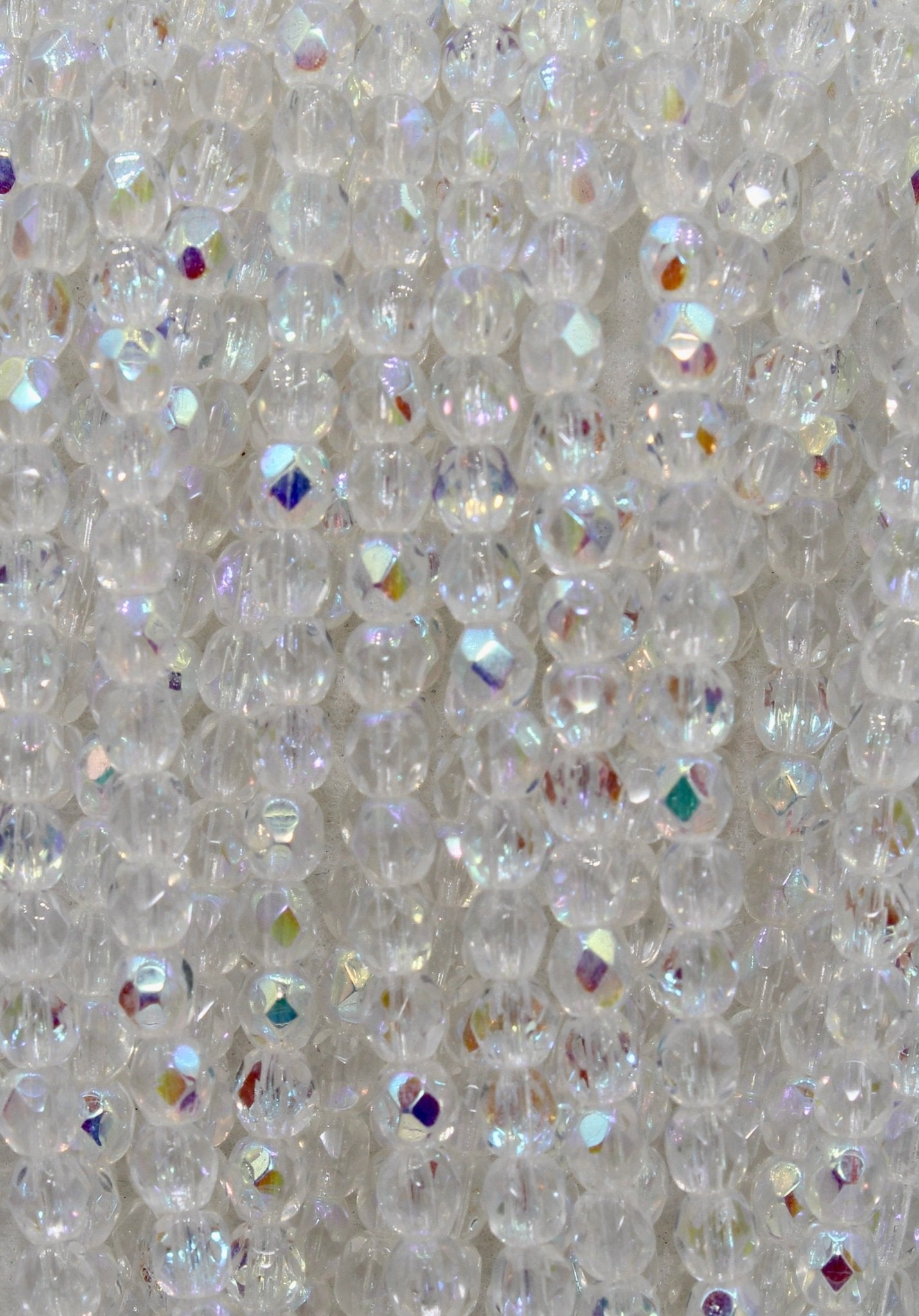 Create stunning jewelry with our extensive collection of glass Fire Polished beads, available in many finishes and colors. 4mm Fire Polished beads are relatively round faceted beads. They are sold by the 6" strand. There are approximately 50 beads per strand, with a .5mm hole.