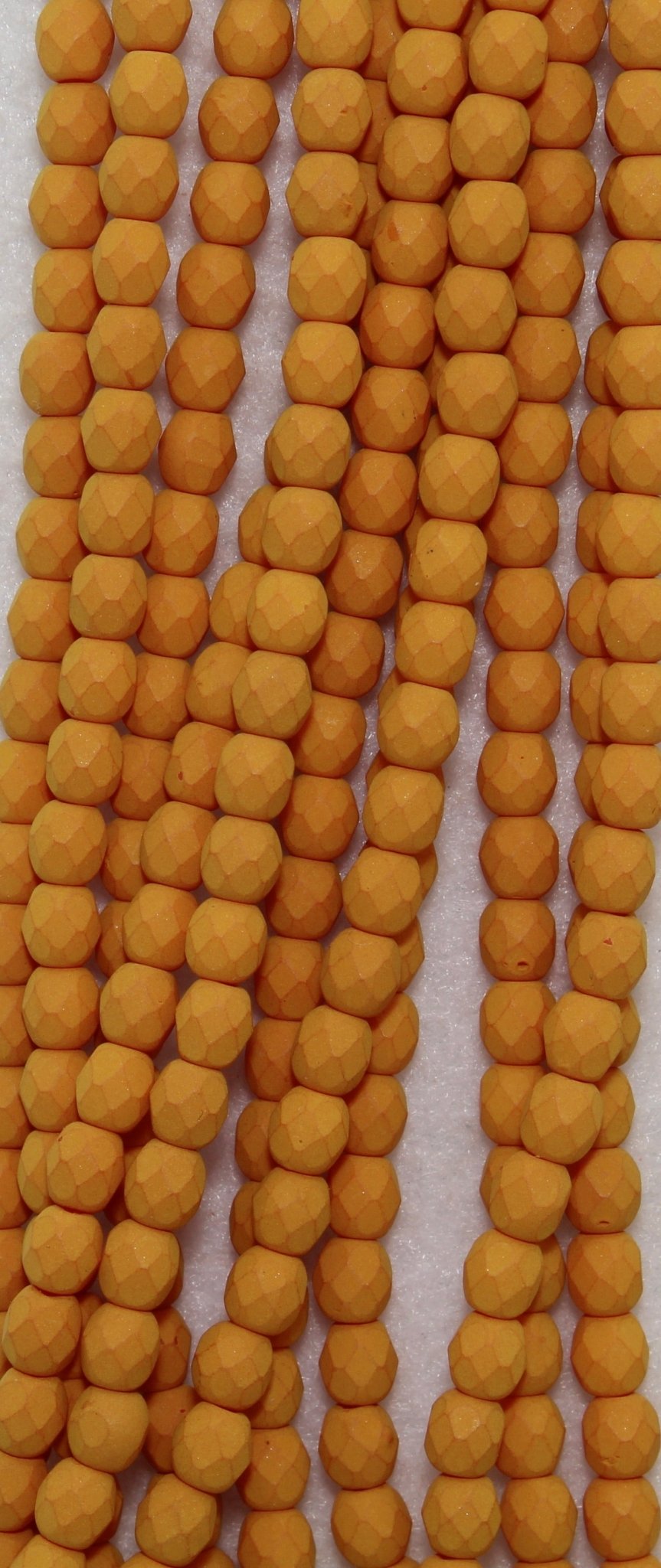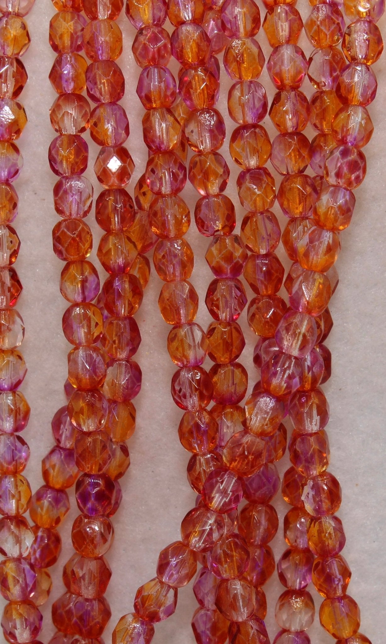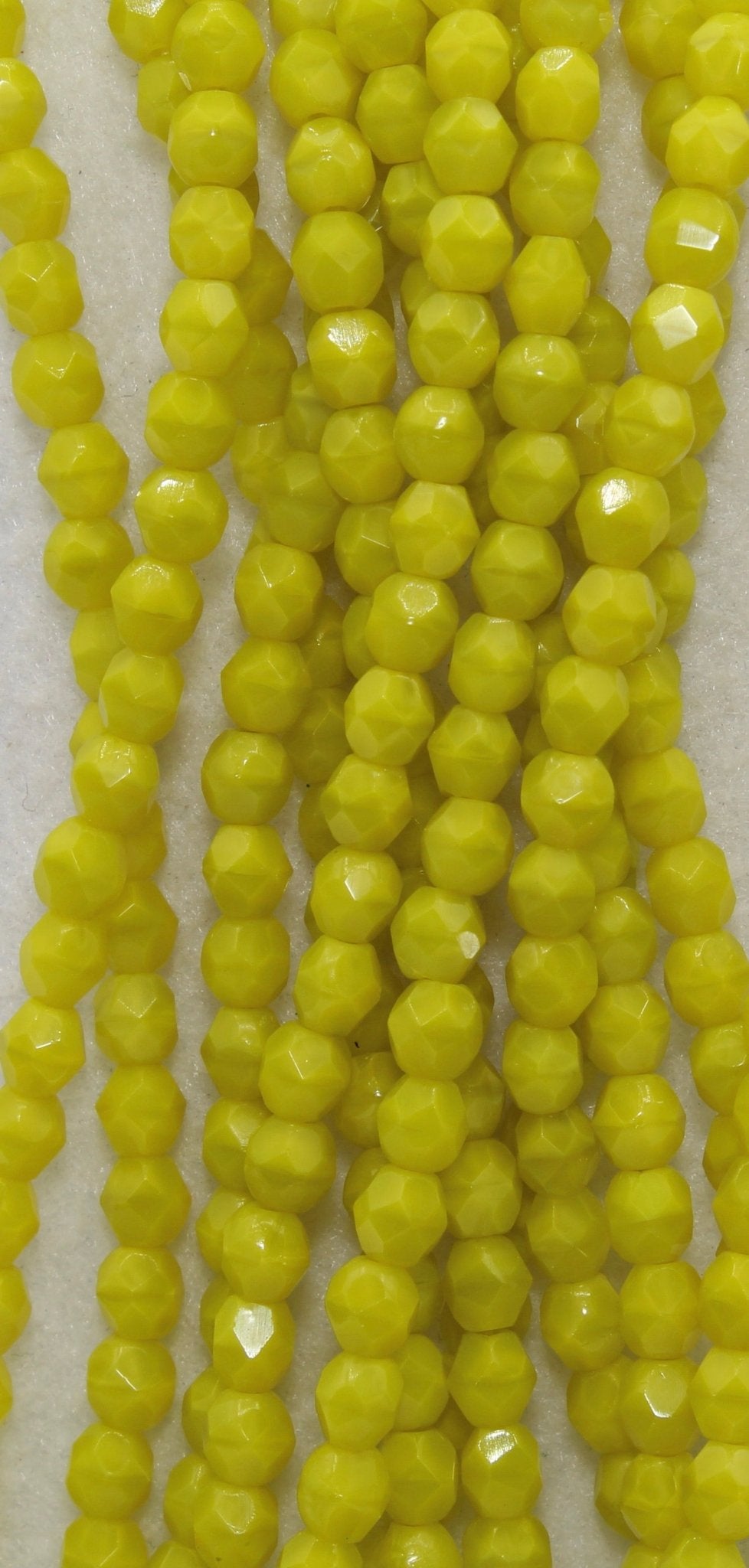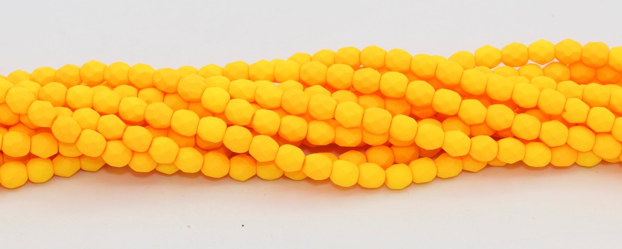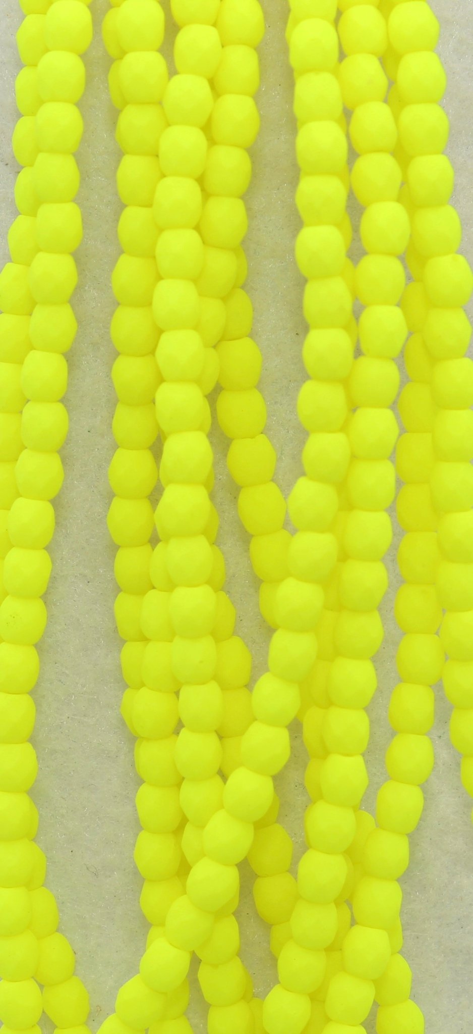 Create stunning jewelry with our extensive collection of glass Fire Polished beads, available in many finishes and colors. 4mm Fire Polished beads are relatively round faceted beads. They are sold by the 6" strand. There are approximately 50 beads per strand, with a .5mm hole.
