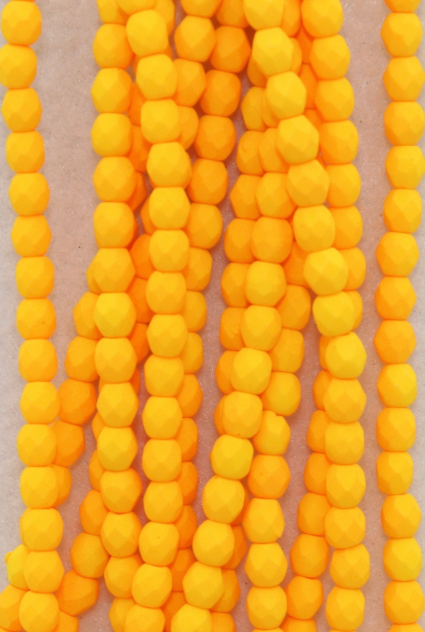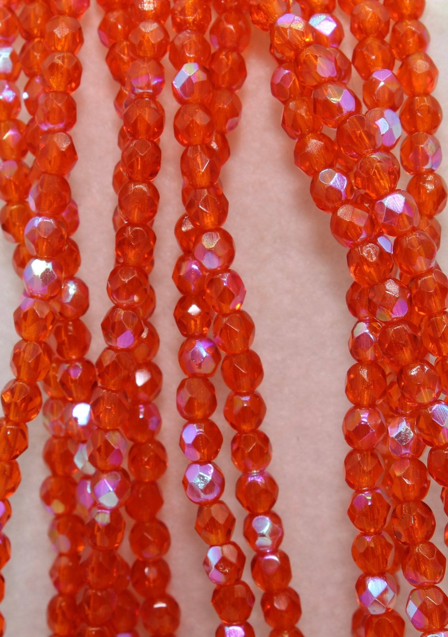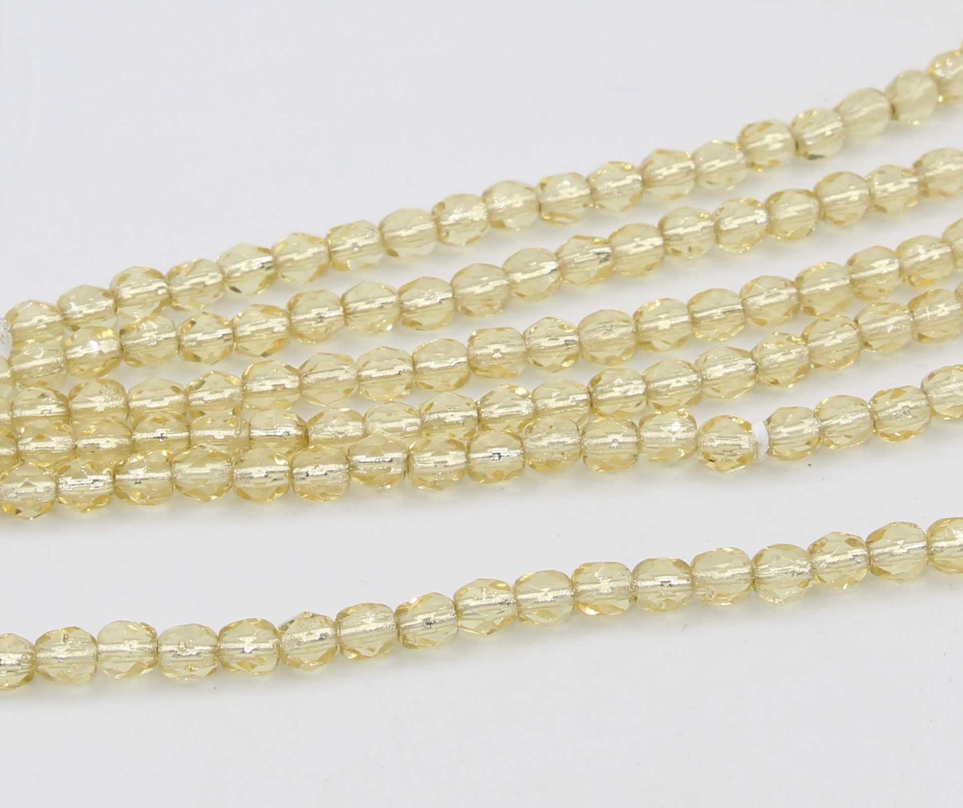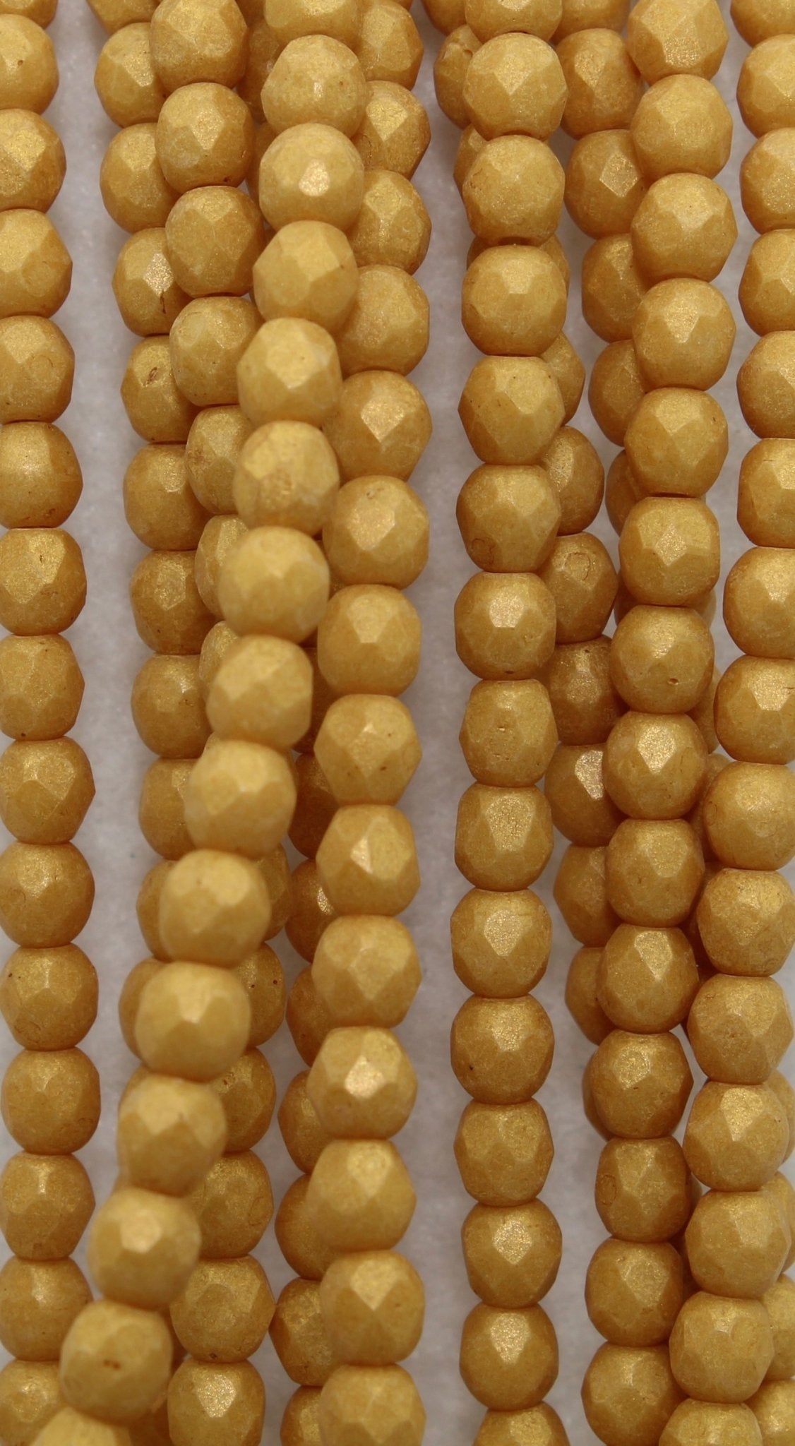 Create stunning jewelry with our extensive collection of glass Fire Polished beads, available in many finishes and colors. 4mm Fire Polished beads are relatively round faceted beads. They are sold by the 6" strand. There are approximately 50 beads per strand, with a .5mm hole.