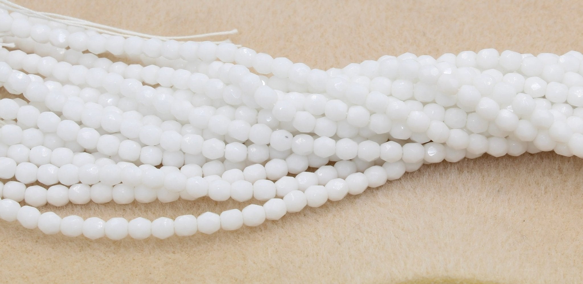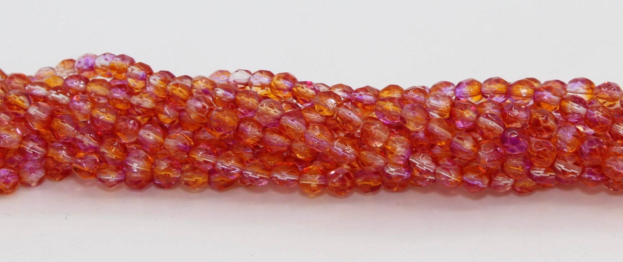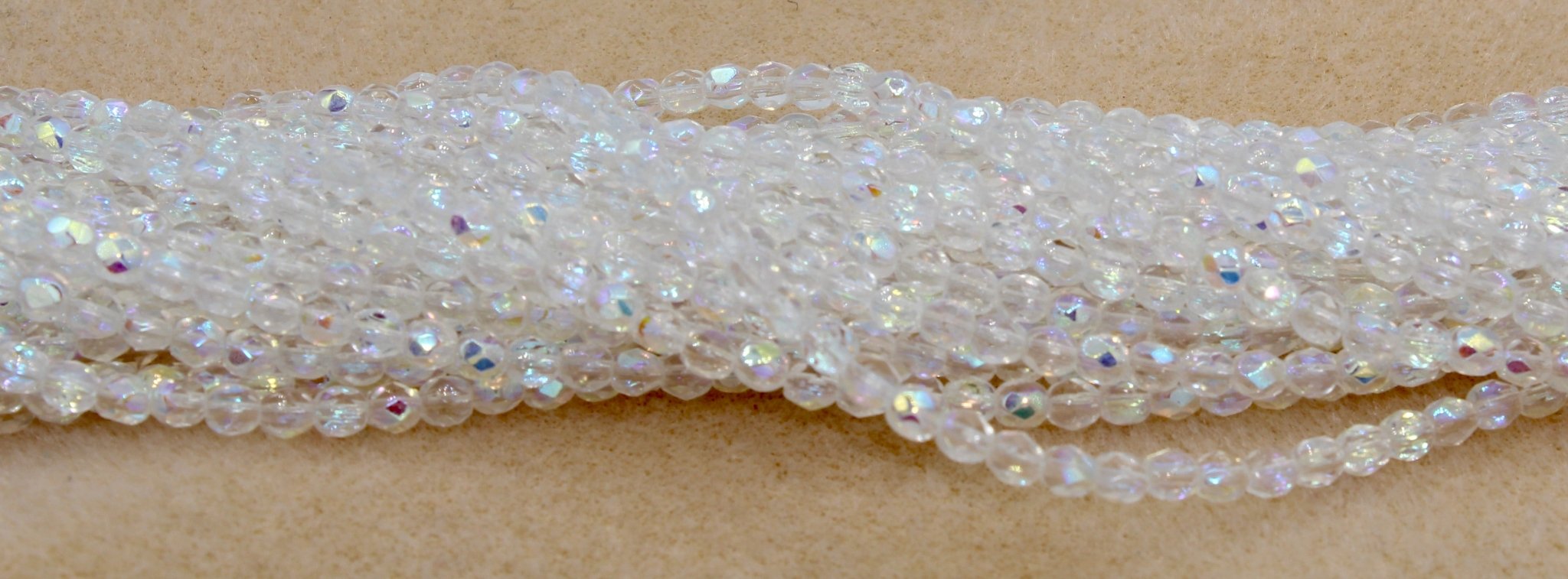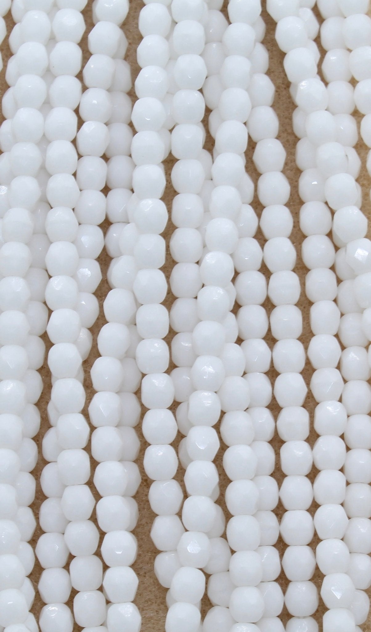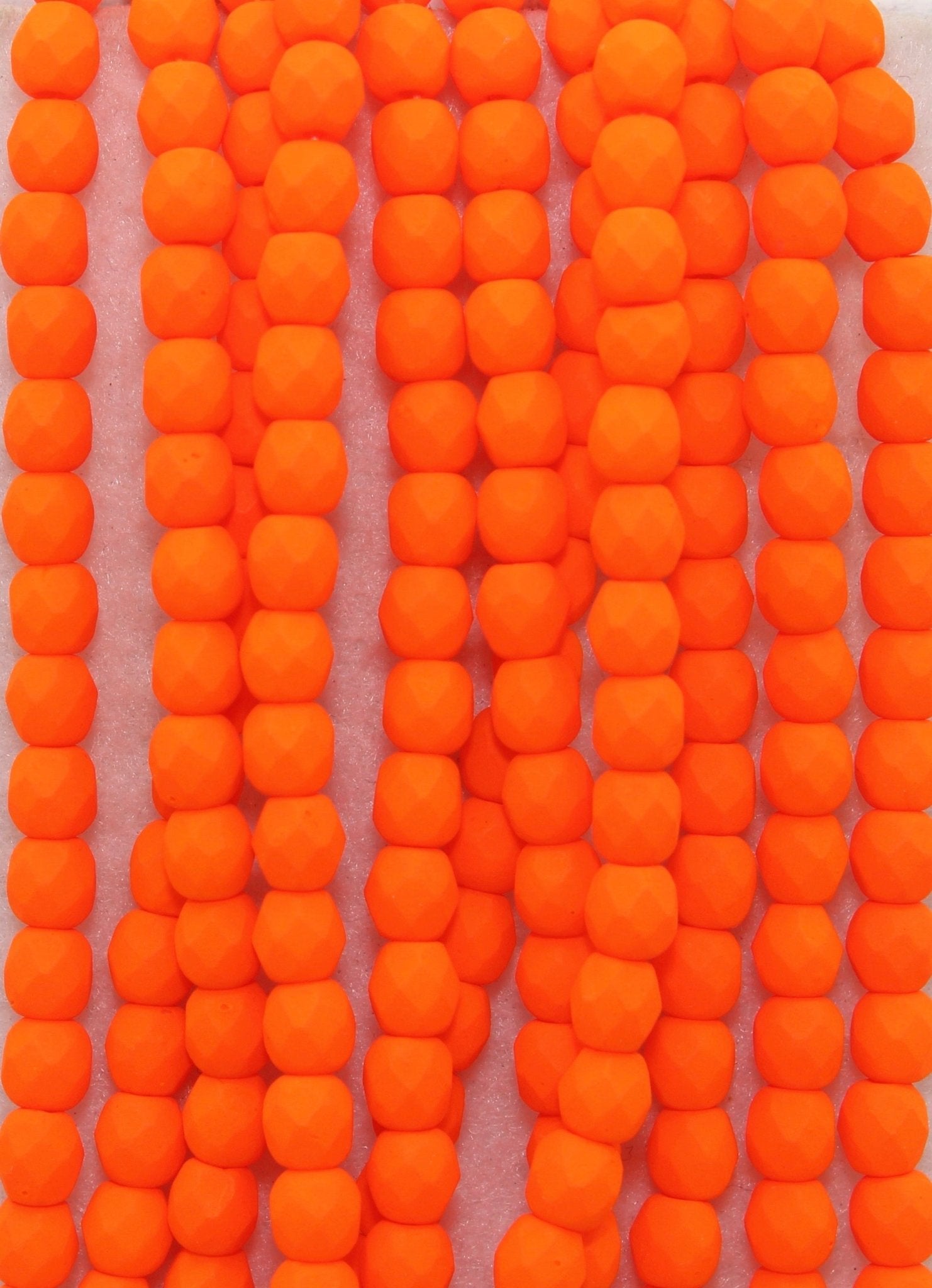 Create stunning jewelry with our extensive collection of glass Fire Polished beads, available in many finishes and colors. 4mm Fire Polished beads are relatively round faceted beads. They are sold by the 6" strand. There are approximately 50 beads per strand, with a .5mm hole.