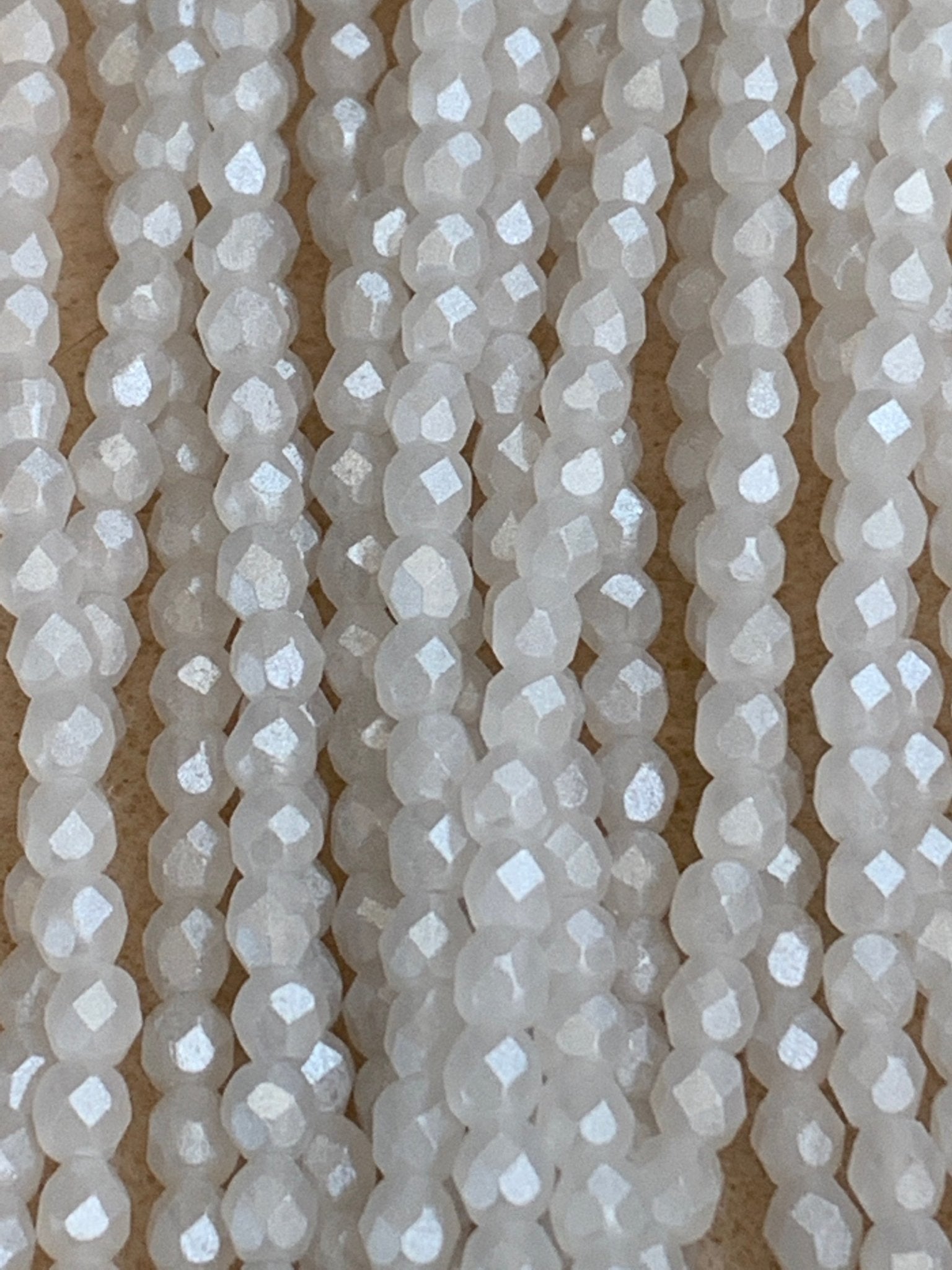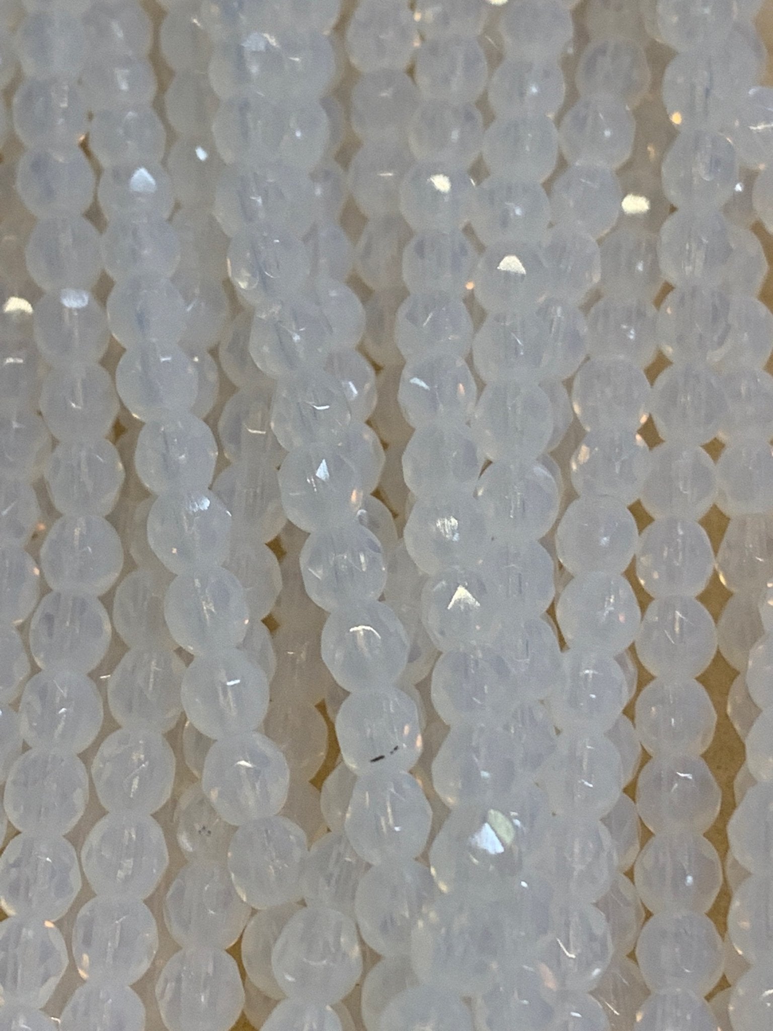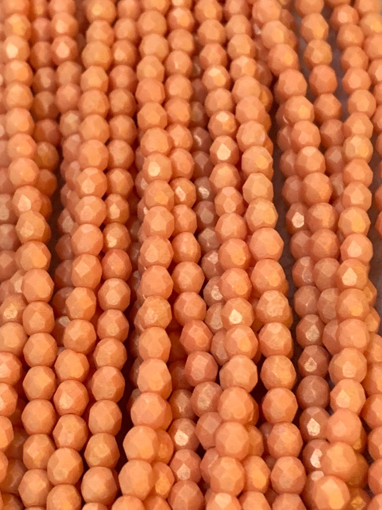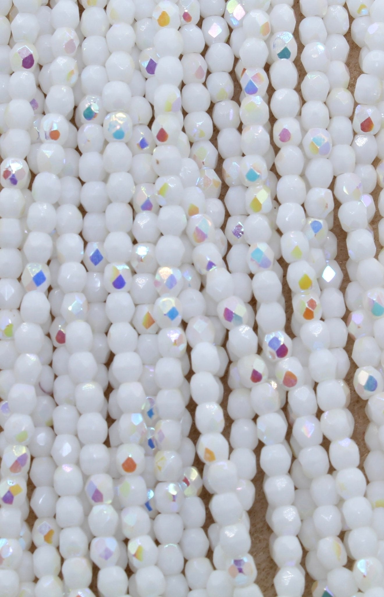 Create stunning jewelry with our extensive collection of glass Fire Polished beads, available in many finishes and colors. 4mm Fire Polished beads are relatively round faceted beads. They are sold by the 6" strand. There are approximately 50 beads per strand, with a .5mm hole.