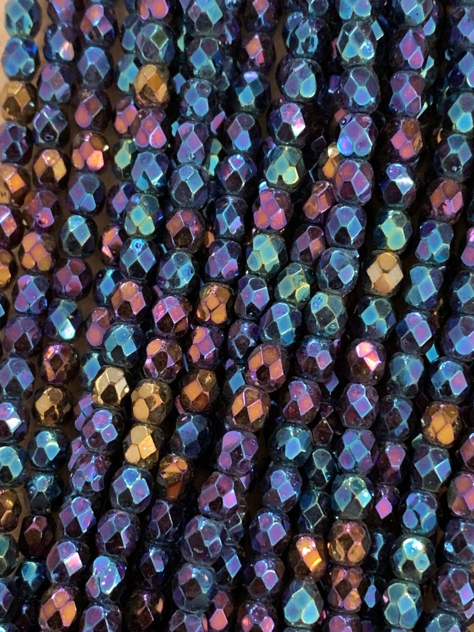 These 4mm Fire Polished beads are sold by the 6" (15cm) strand. Each strand has approximately 50 beads.