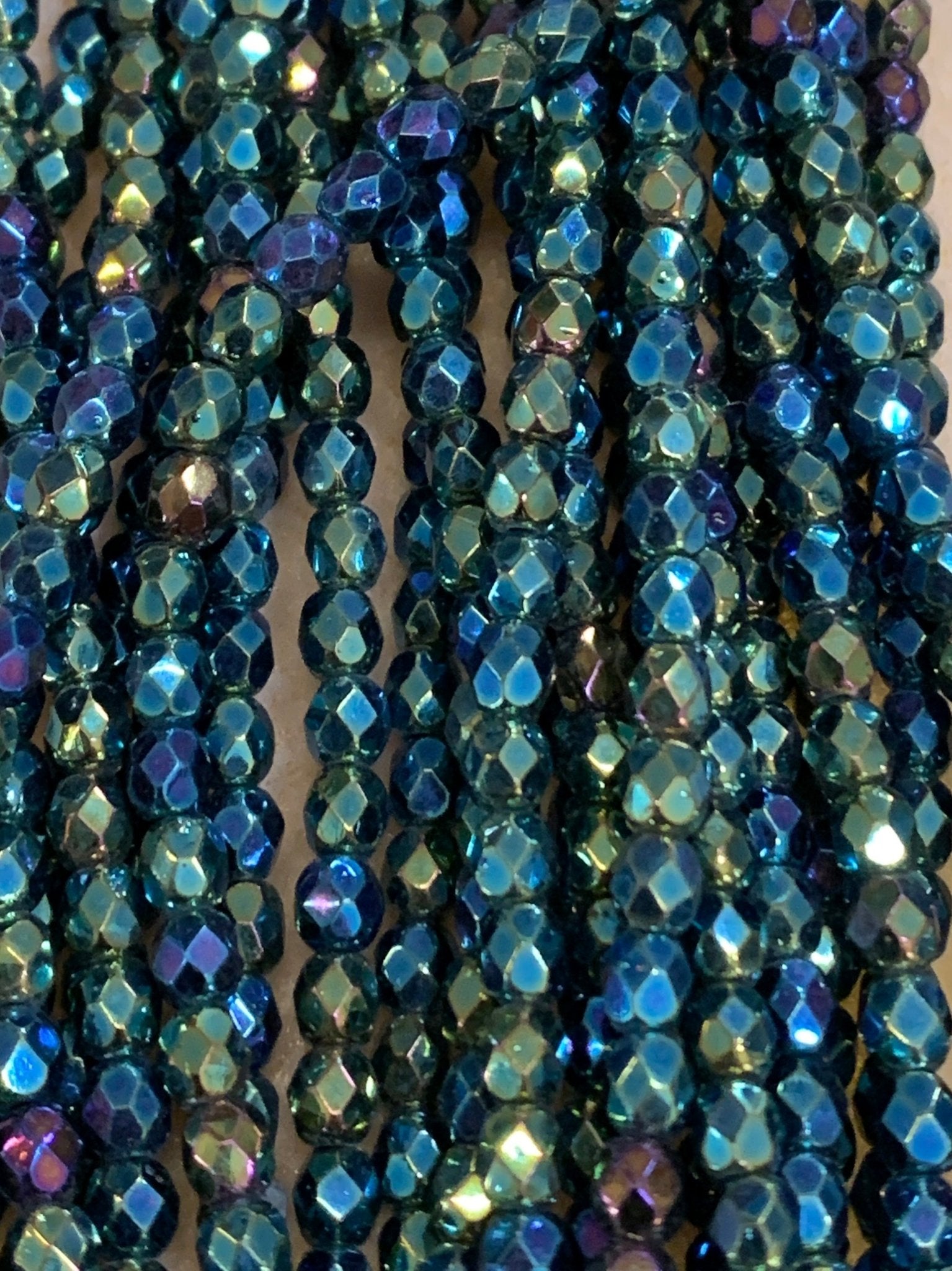 These 4mm Fire Polished beads are sold by the 6" (15cm) strand. Each strand has approximately 50 beads.