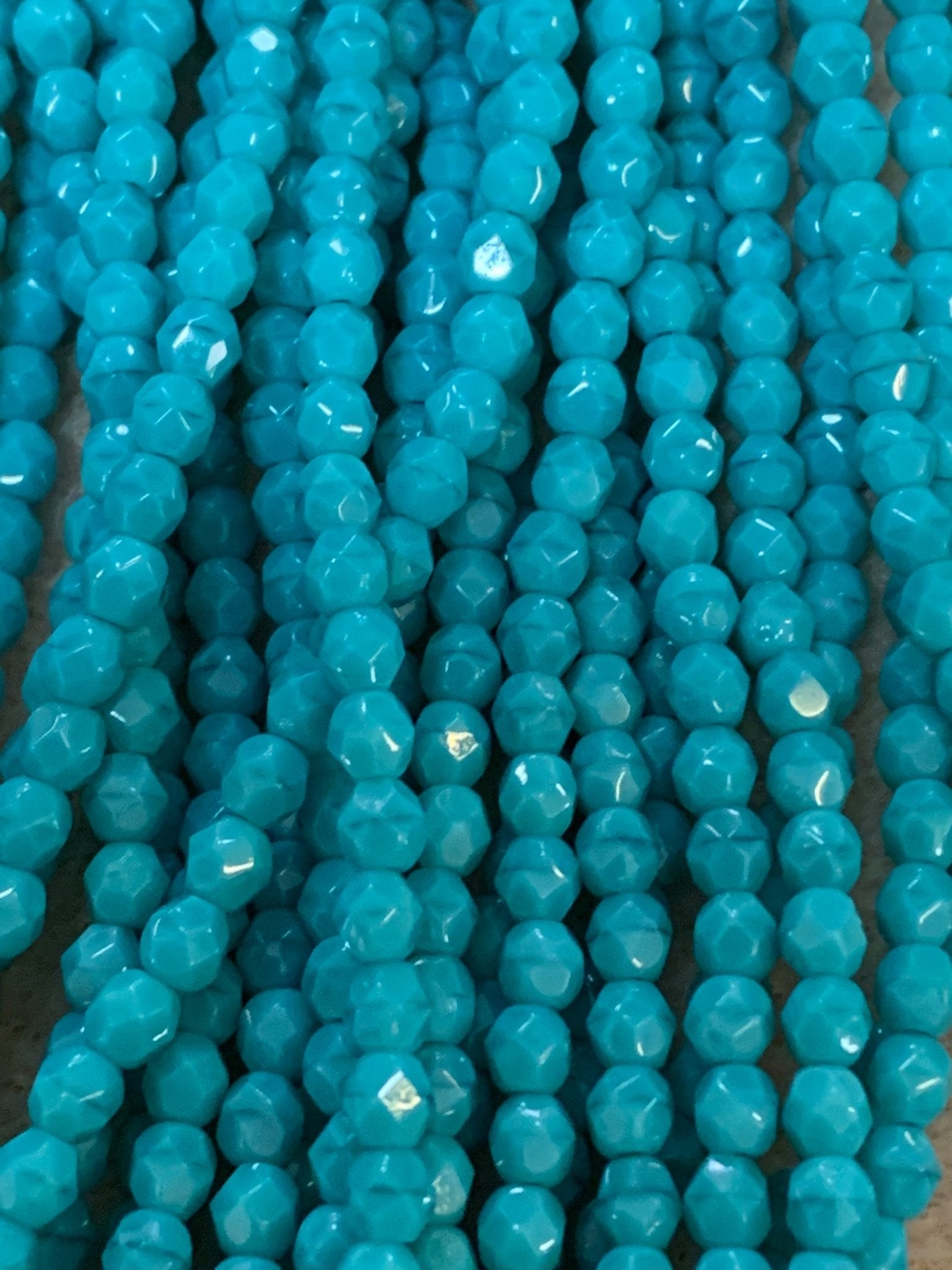 These 4mm Fire Polished beads are sold by the 6" (15cm) strand. Each strand has approximately 50 beads.
