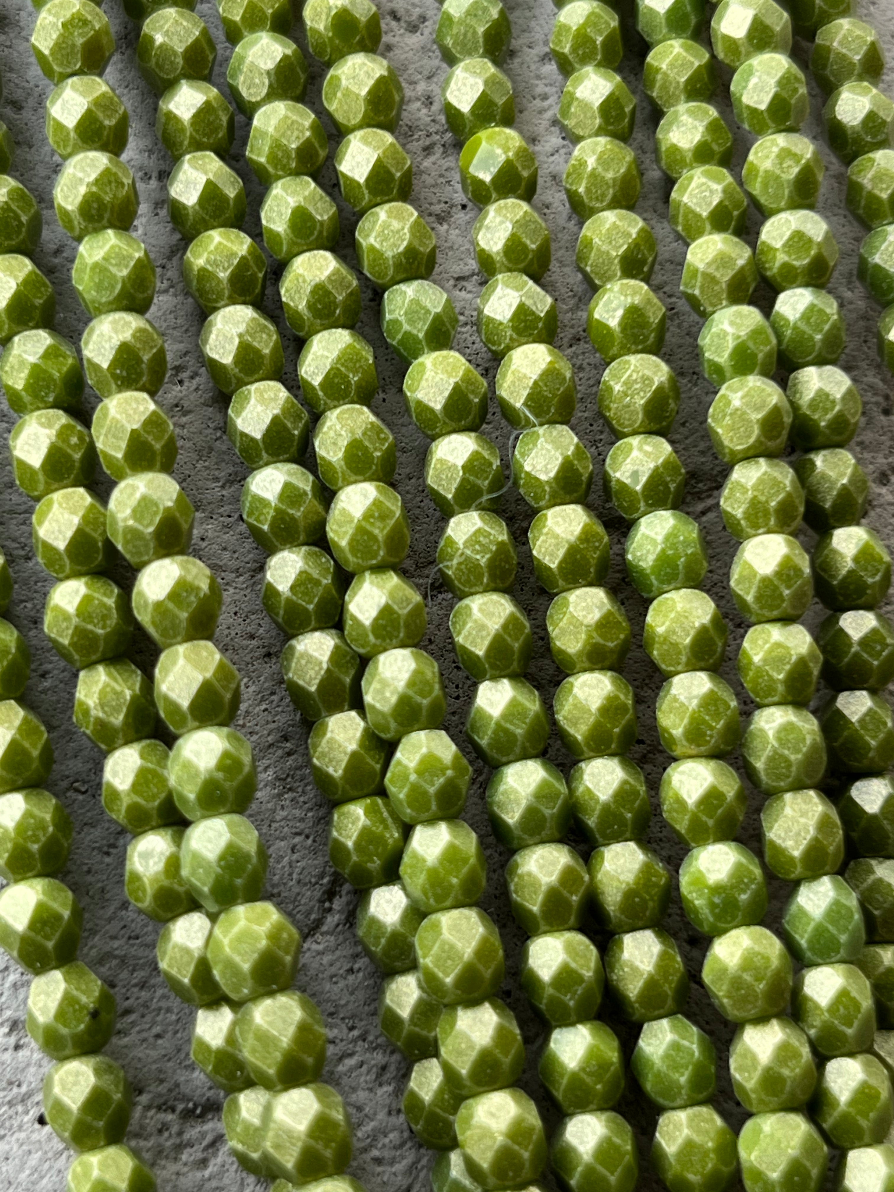 Sueded Gold Olive - 4mm Fire Polished Beads