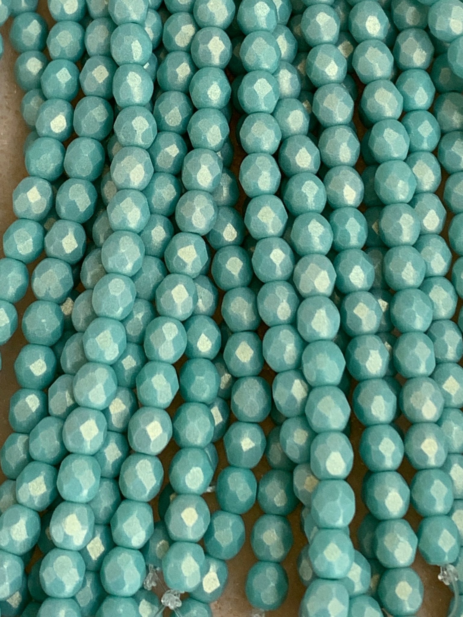 These 4mm Fire Polished beads are sold by the 6" (15cm) strand. Each strand has approximately 50 beads.