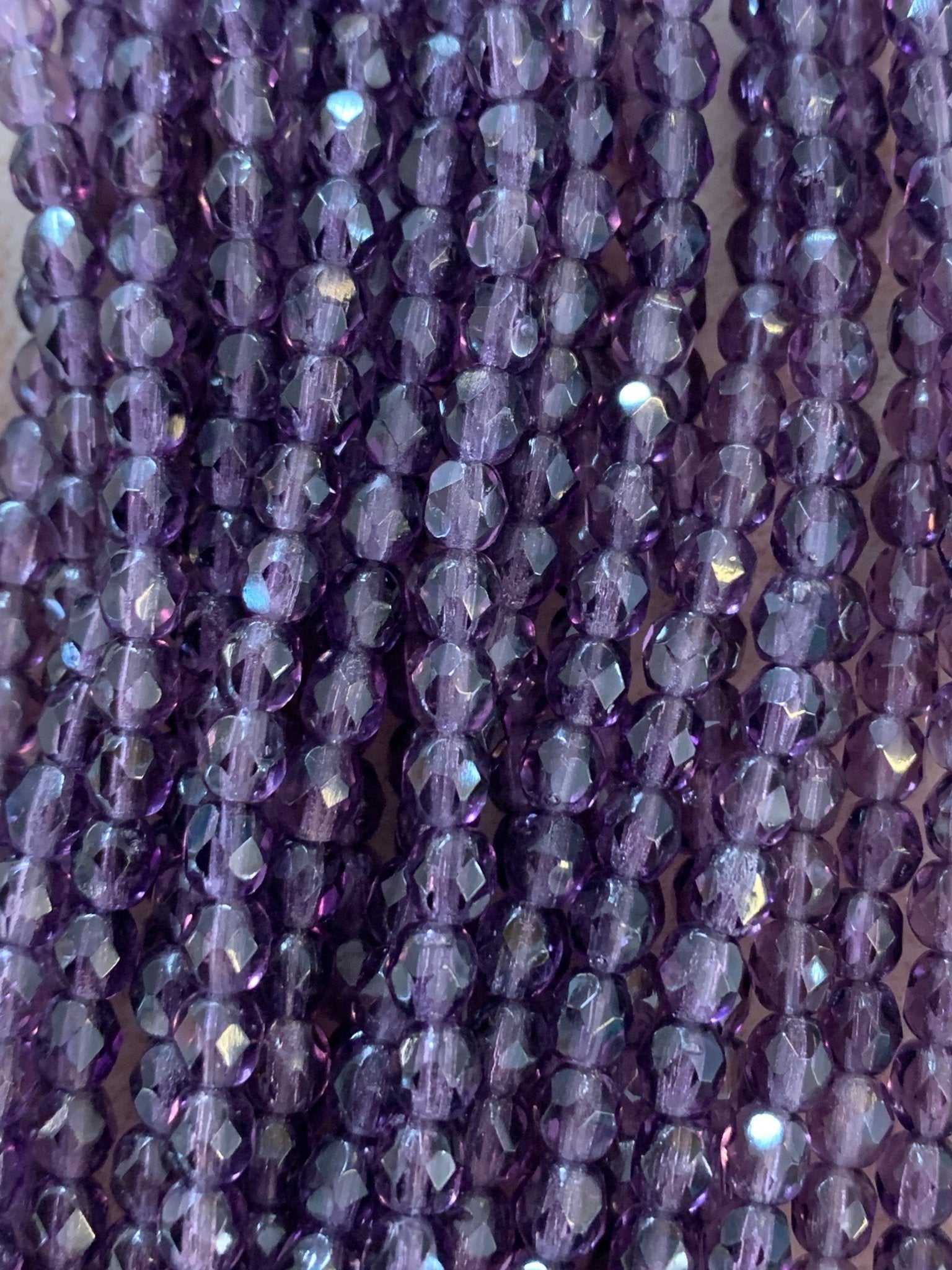 These 4mm Fire Polished beads are sold by the 6" (15cm) strand. Each strand has approximately 50 beads.