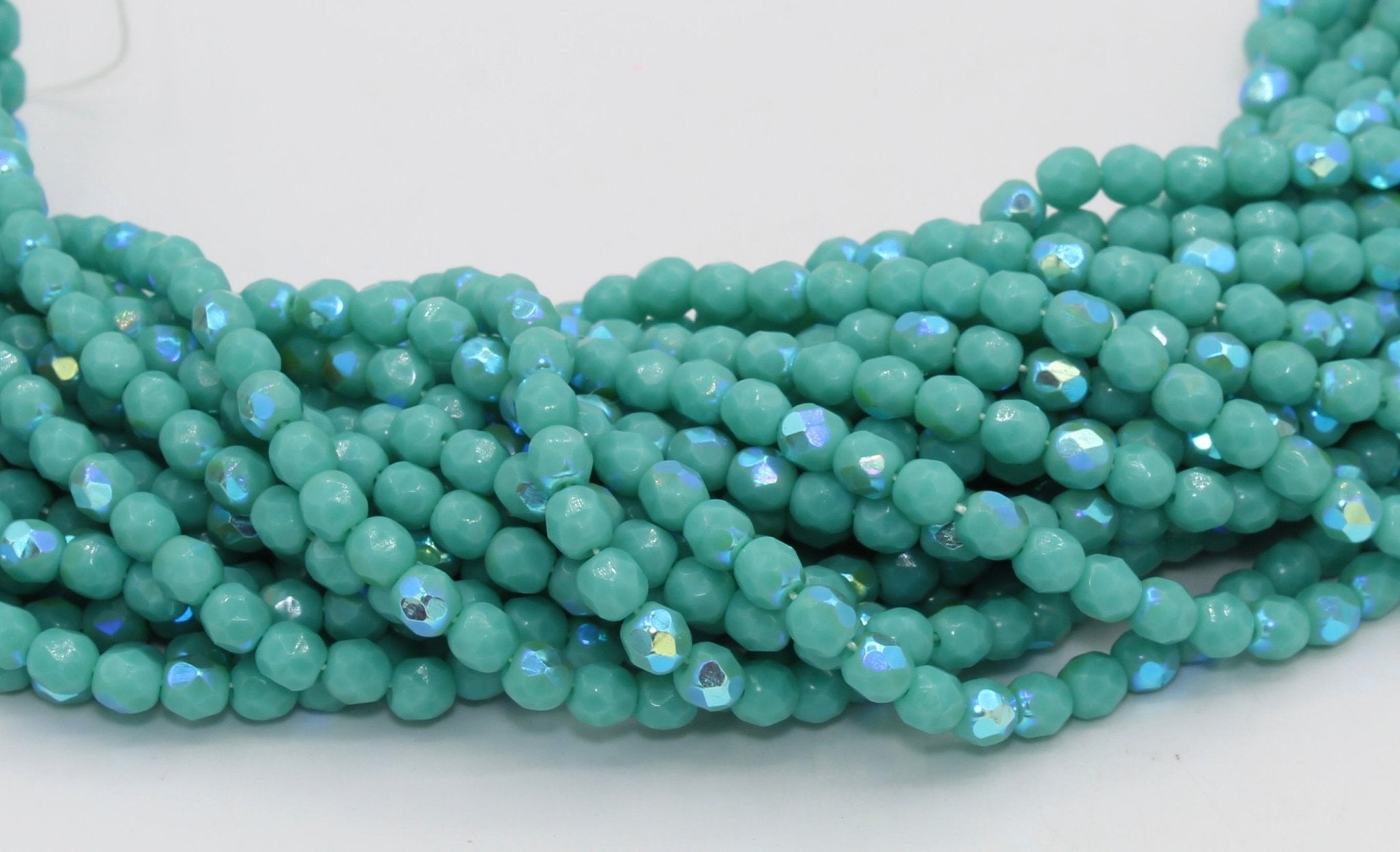 These 4mm Fire Polished beads are sold by the 6" (15cm) strand. Each strand has approximately 50 beads.