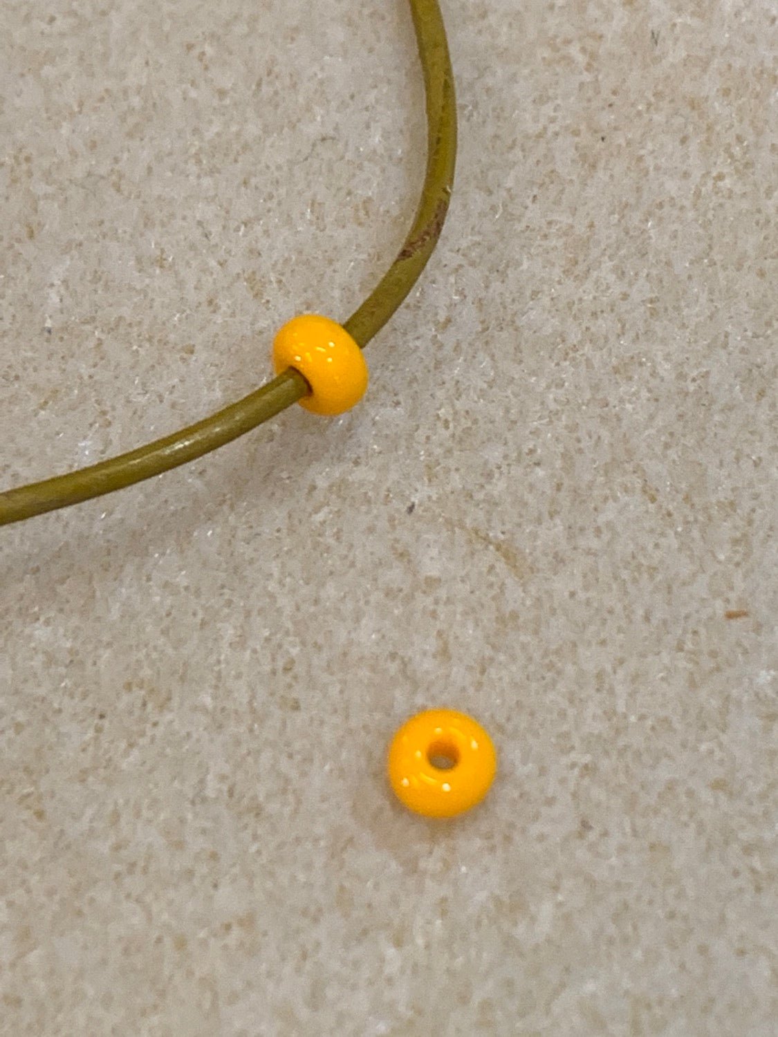 Size 6 seed beads are can accommodate up to 1mm leather or cord, 1mm stretch cord or heavy Soft Flex.