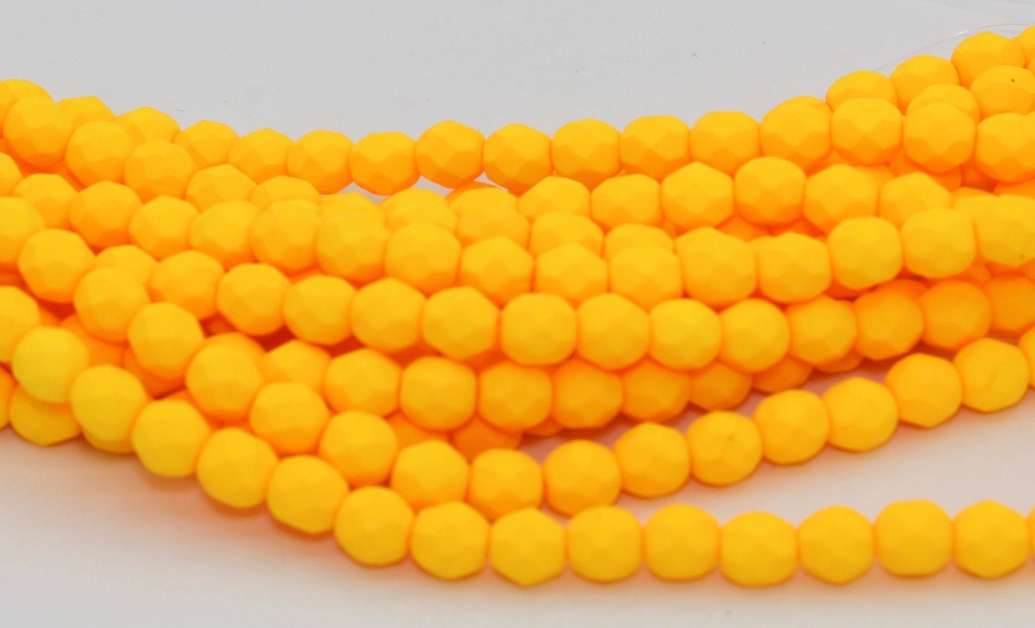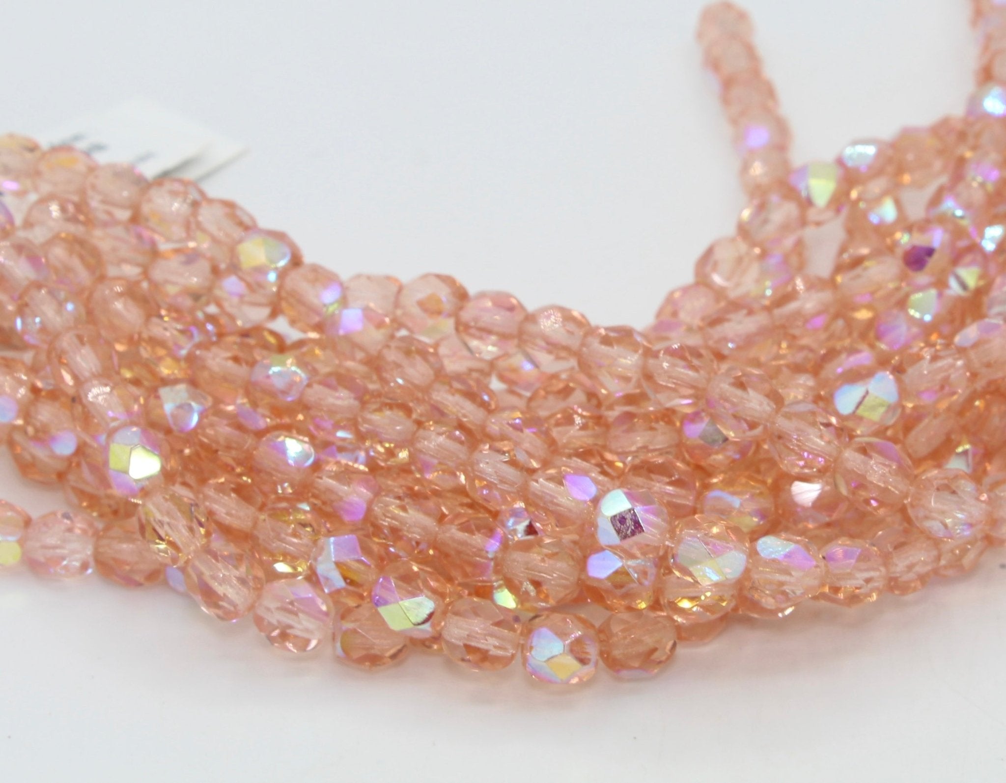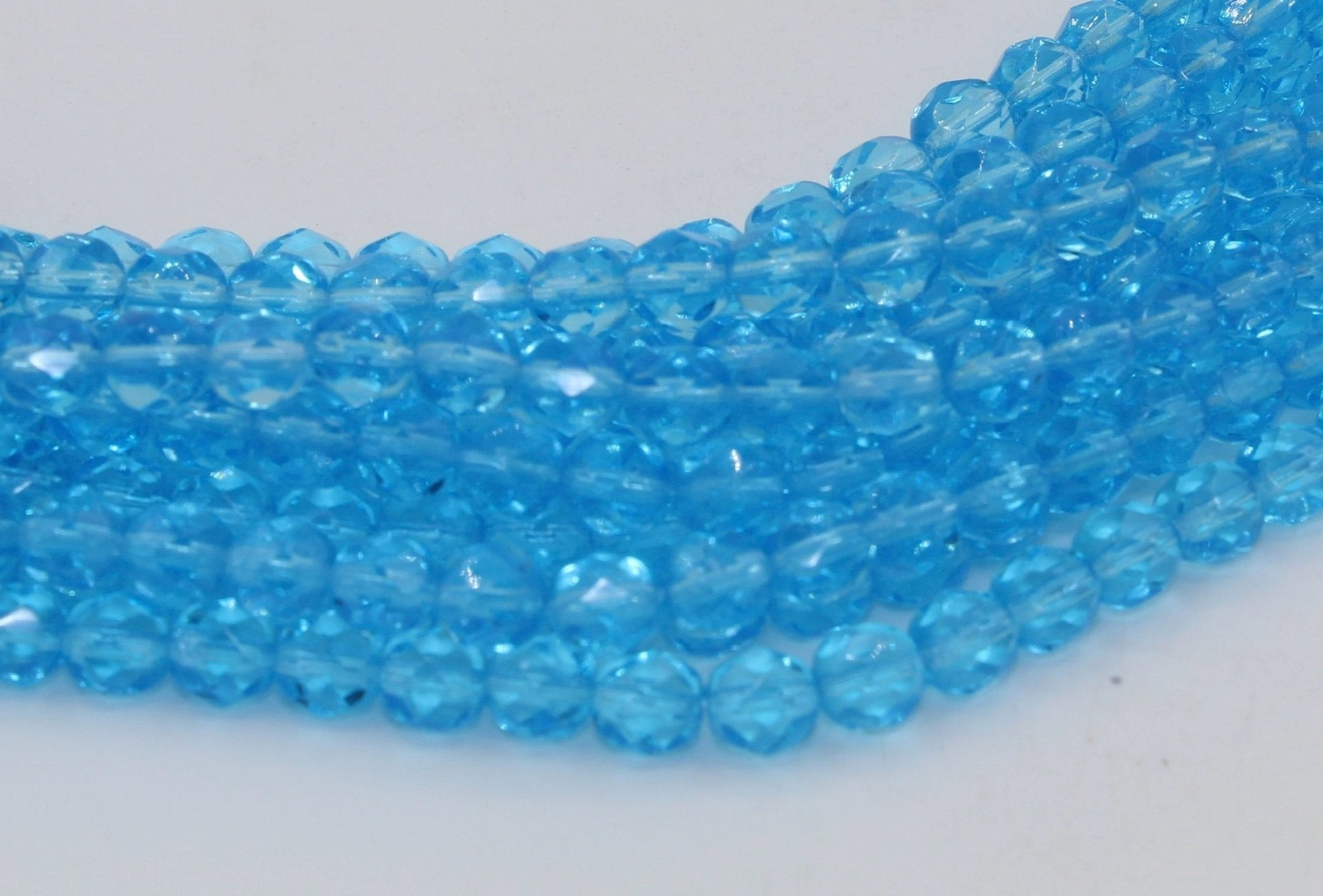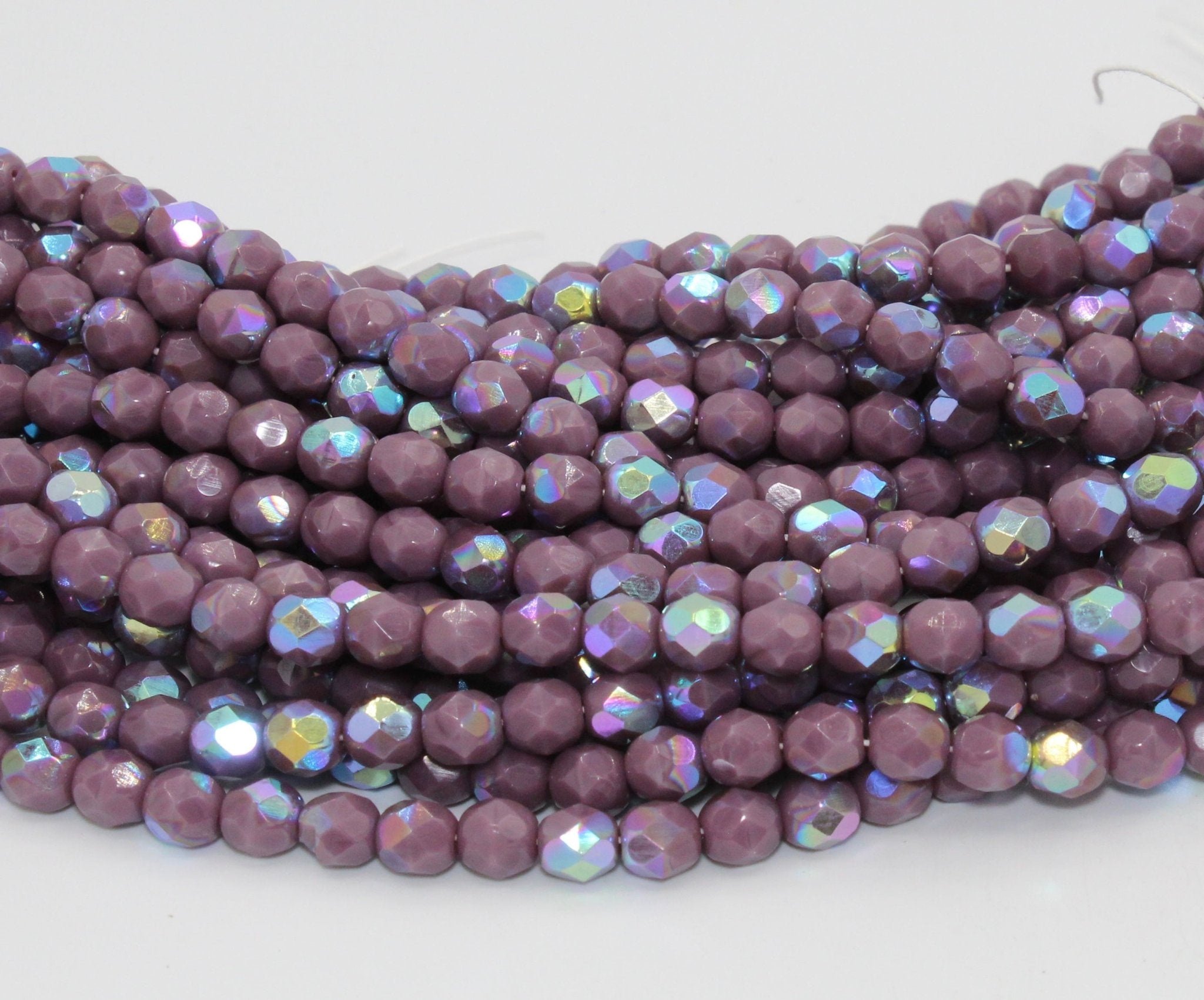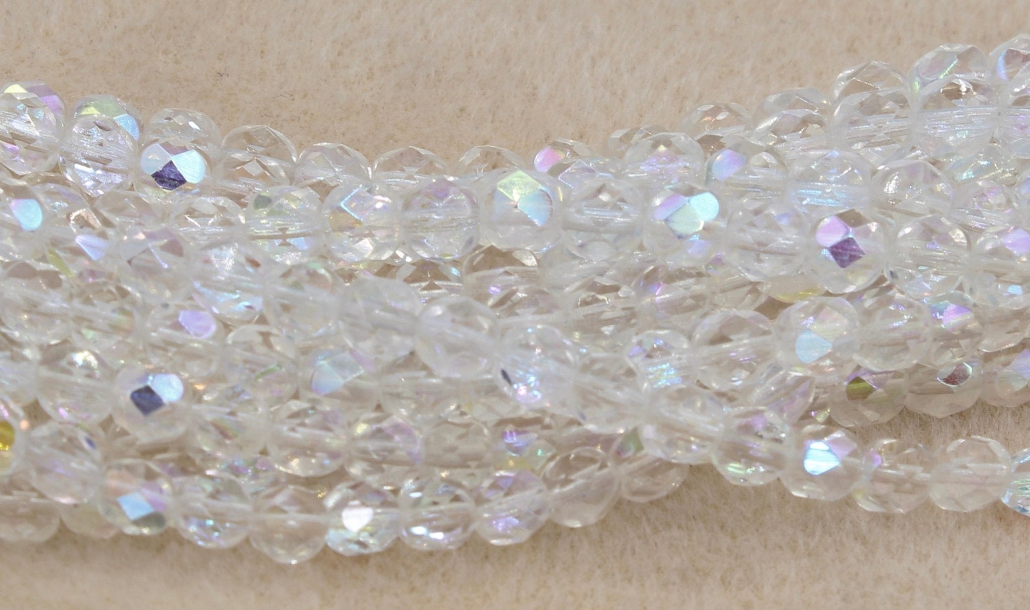 Create stunning jewelry with our extensive collection of glass Fire Polished beads, available in many finishes and colors. 6mm Fire Polished beads are relatively round faceted beads. They are sold by the 6" strand. There are approximately 25 beads per strand, with a .5mm hole.