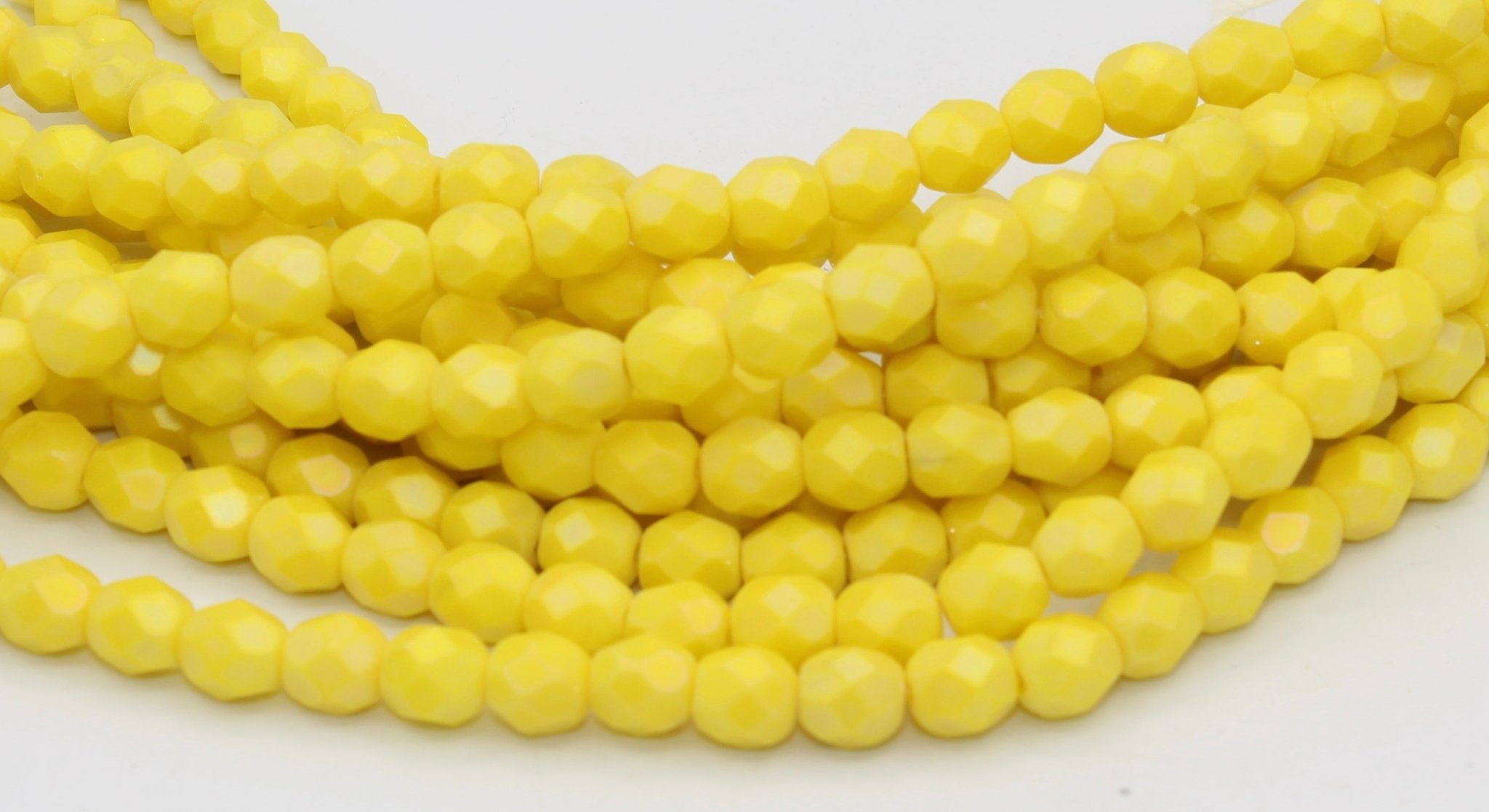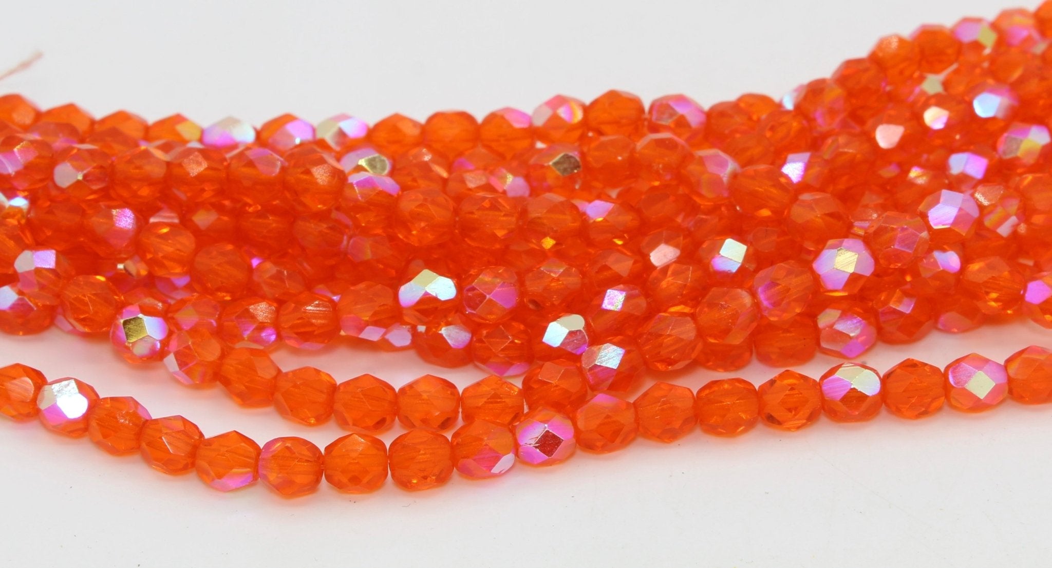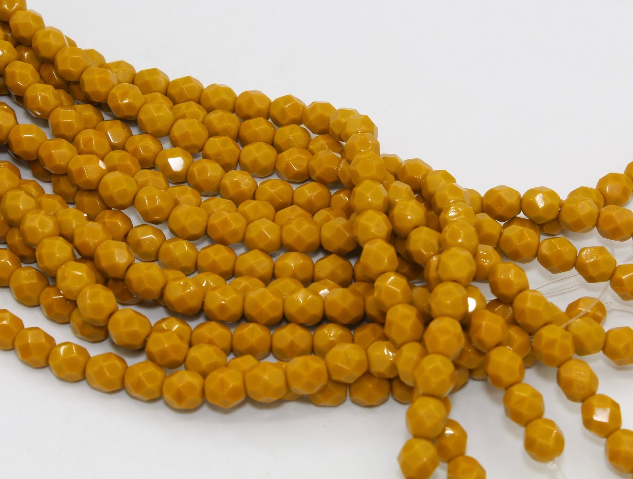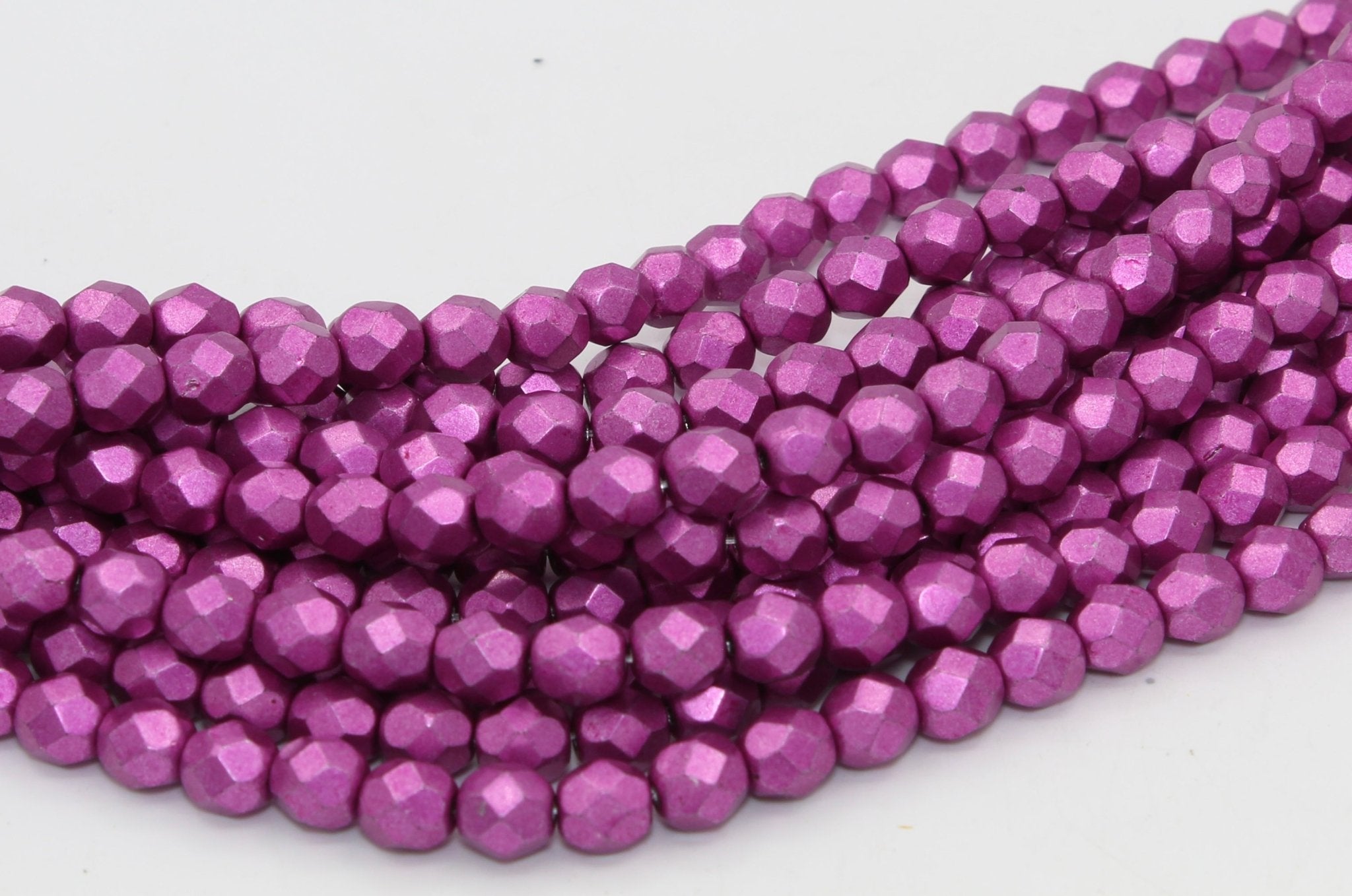 Create stunning jewelry with our extensive collection of glass Fire Polished beads, available in many finishes and colors. 6mm Fire Polished beads are relatively round faceted beads. They are sold by the 6" strand. There are approximately 25 beads per strand, with a .5mm hole.