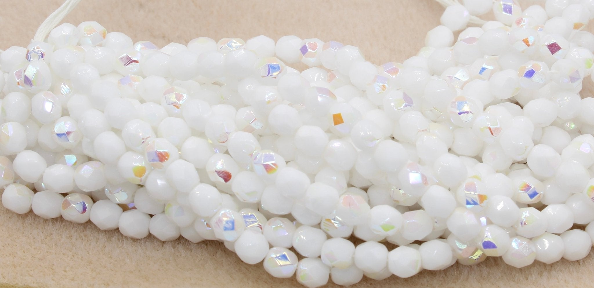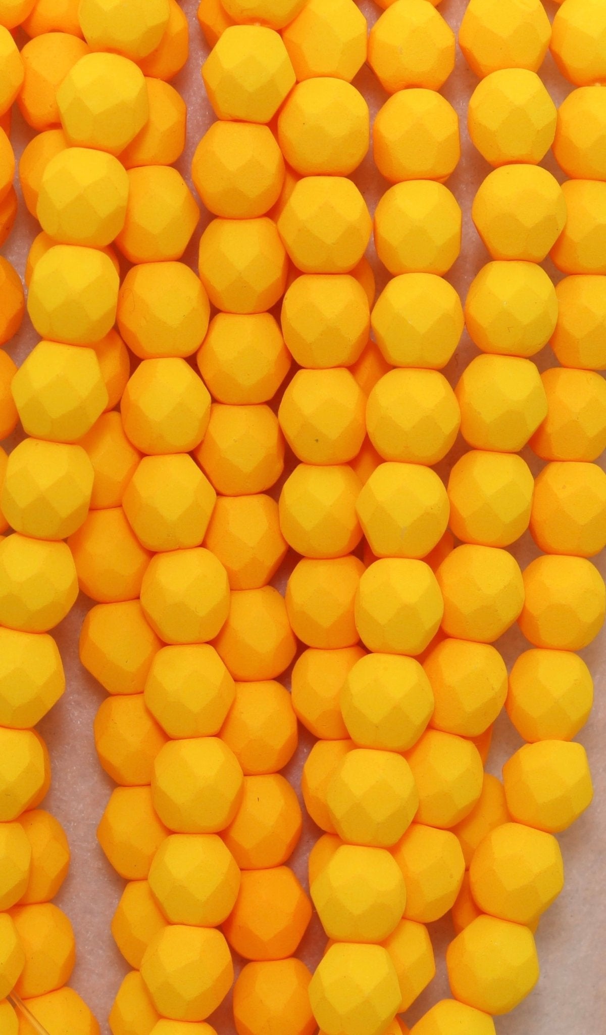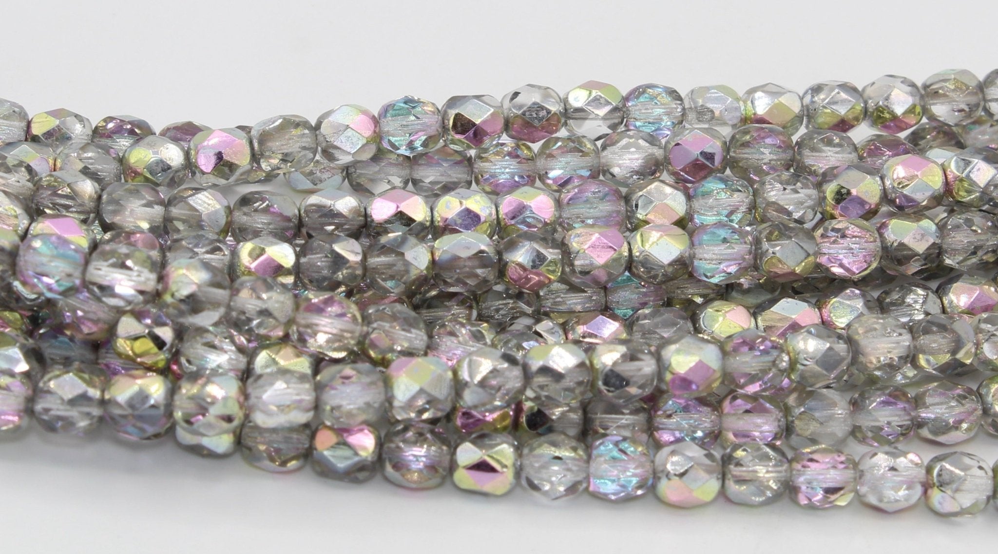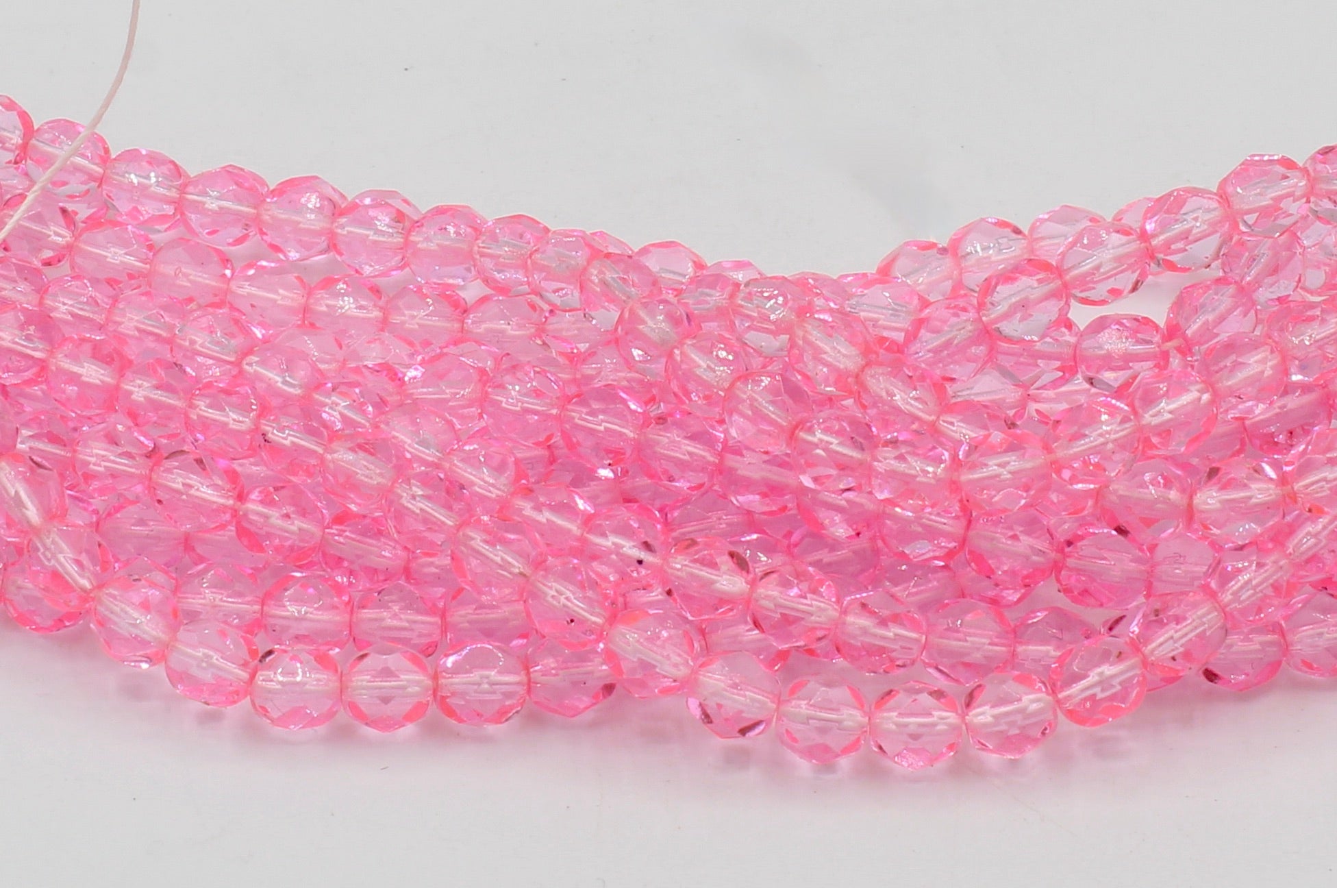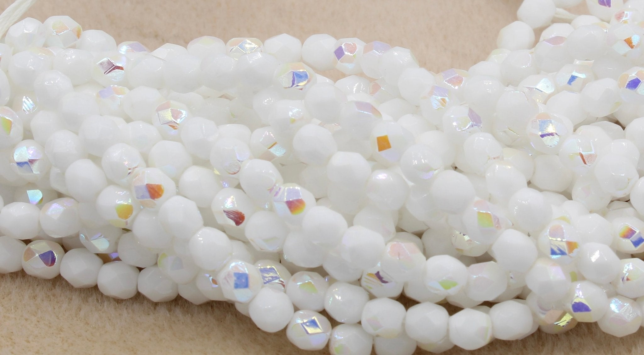 Create stunning jewelry with our extensive collection of glass Fire Polished beads, available in many finishes and colors. 6mm Fire Polished beads are relatively round faceted beads. They are sold by the 6" strand. There are approximately 25 beads per strand, with a .5mm hole.